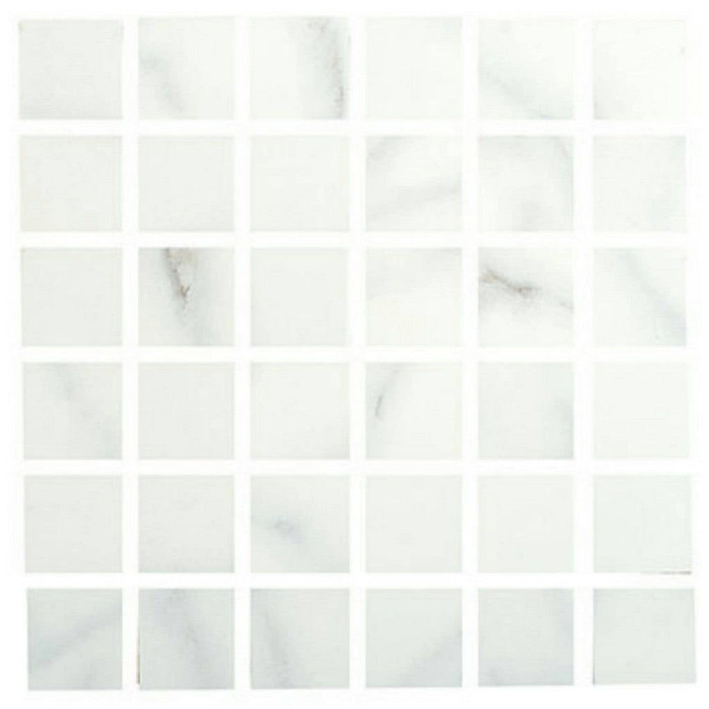 Alfagres Calacata 12x12 Matte Ceramic 2 Mesh Mosaic is the ideal solution for adding texture and style to your walls, backsplashes, or shower floors. The 2 mesh-mounted pieces allow for flexible application, especially in curved or intricate spaces. With its soft marble appearance and matte surface, it elevates both residential and commercial interiors.