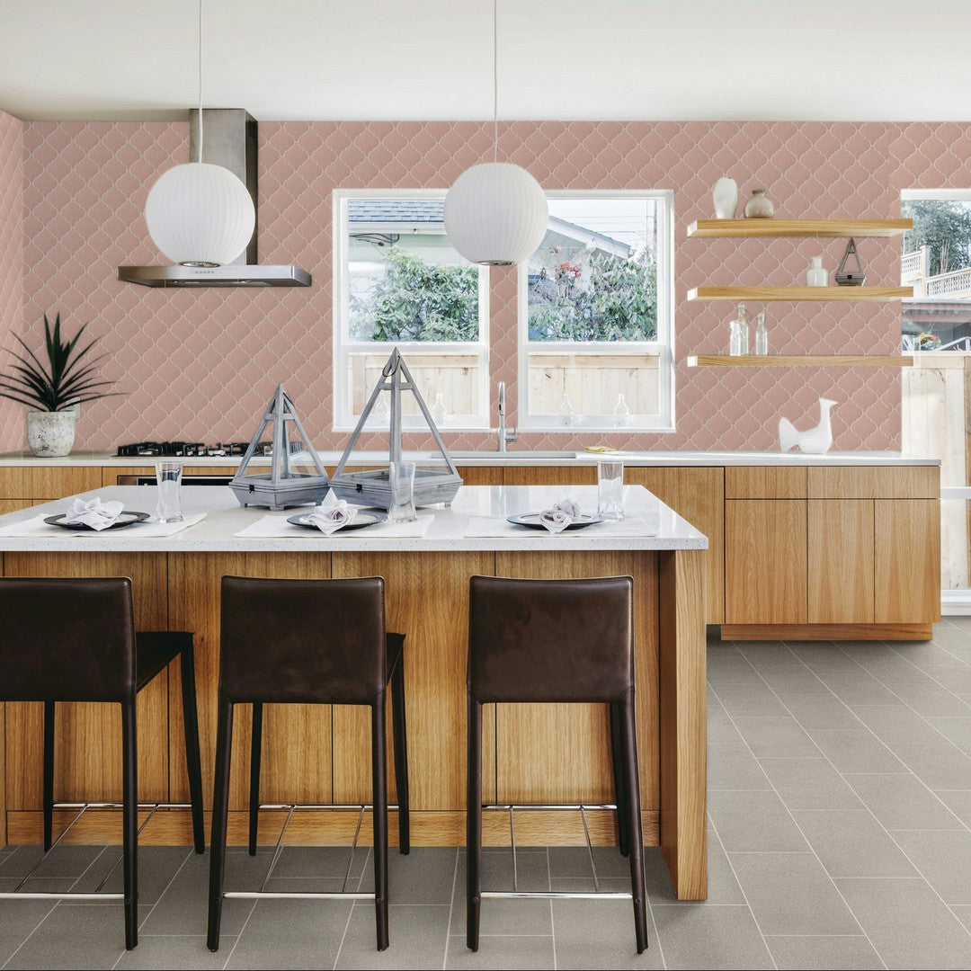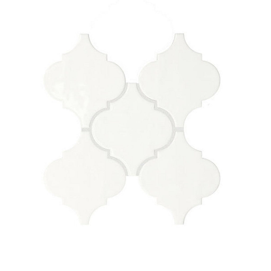 American Olean Playscapes 5.25" x 6" Glossy Ceramic Arabesque Wall Tile is a striking option for creating a sophisticated and elegant design. The arabesque shape combined with the glossy ceramic finish gives this tile a luxurious and timeless appeal. Its unique pattern makes it perfect for creating feature walls, backsplashes, or accent areas in kitchens and bathrooms. The durable ceramic ensures long-lasting beauty and resilience, making it an excellent choice for high-use areas.