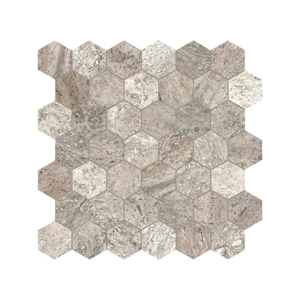 Anatolia Natural Stone 12" x 12" Filled & Honed Travertine 2" Hexagon Mosaic offers the perfect balance of rustic texture and modern geometry in this $12" \times 12"$ filled and honed travertine hexagon mosaic. The smooth, refined finish of the natural travertine stone is set in a versatile $2"$ hexagon tile pattern, making it ideal for creating warm, inviting floors and walls with a durable, sophisticated surface. Choose this travertine hexagon mosaic for timeless, earth-toned elegance.