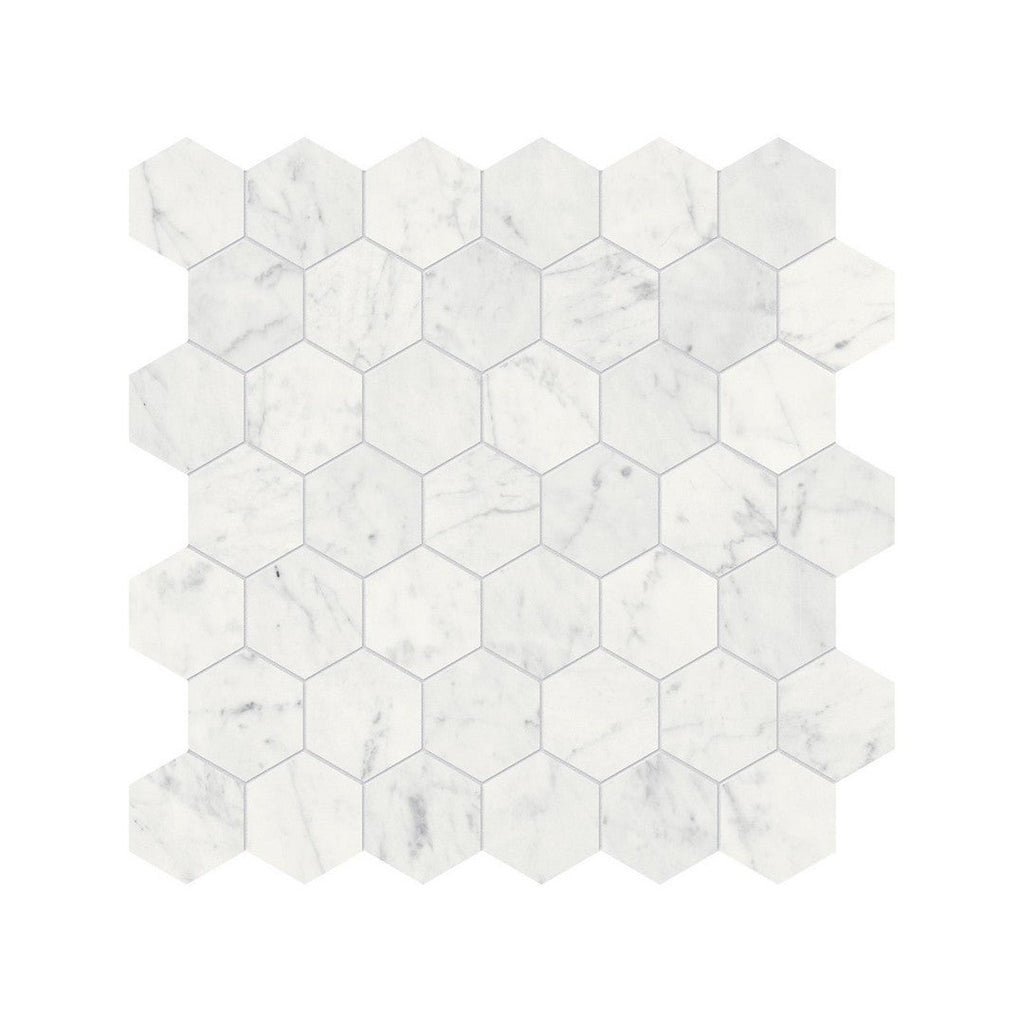Anatolia Natural Stone 12" x 12" Polished Marble 2" Hexagon Mosaic brings a brilliant, geometric sophistication with this eye-catching $12" \times 12"$ polished marble hexagon mosaic. The classic $2"$ hexagon tile pattern in highly reflective natural polished marble is perfect for creating light-filled, glamorous surfaces on walls and backsplashes. This popular polished marble mosaic is the ideal choice for adding luxury and geometric flair to your home design.