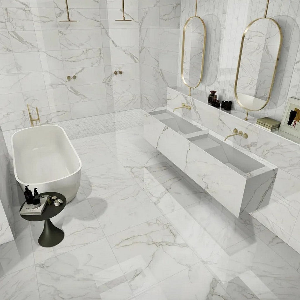 Arizona Tile Marvel 24x24 Polished Rectified Porcelain Tile brings a bold, glossy finish to sophisticated interiors. Its mirror-like surface enhances light and space, offering a timeless design that complements luxury floors, walls, and statement spaces.
