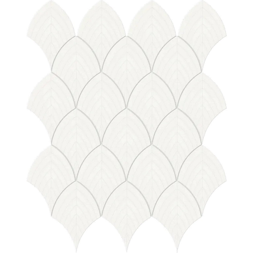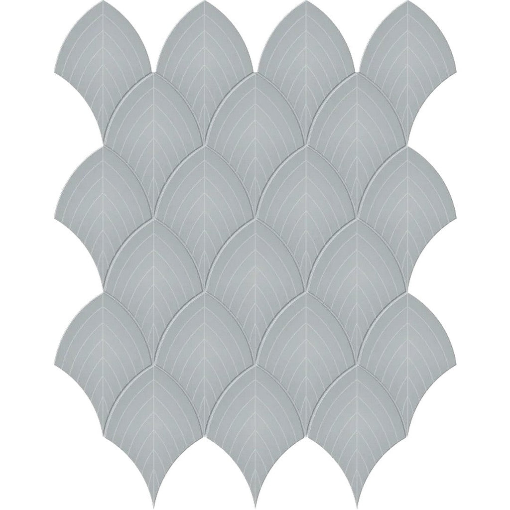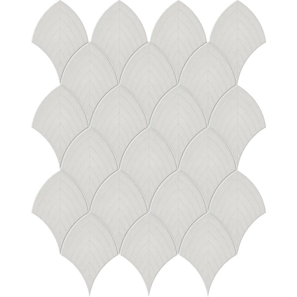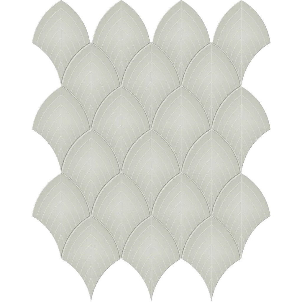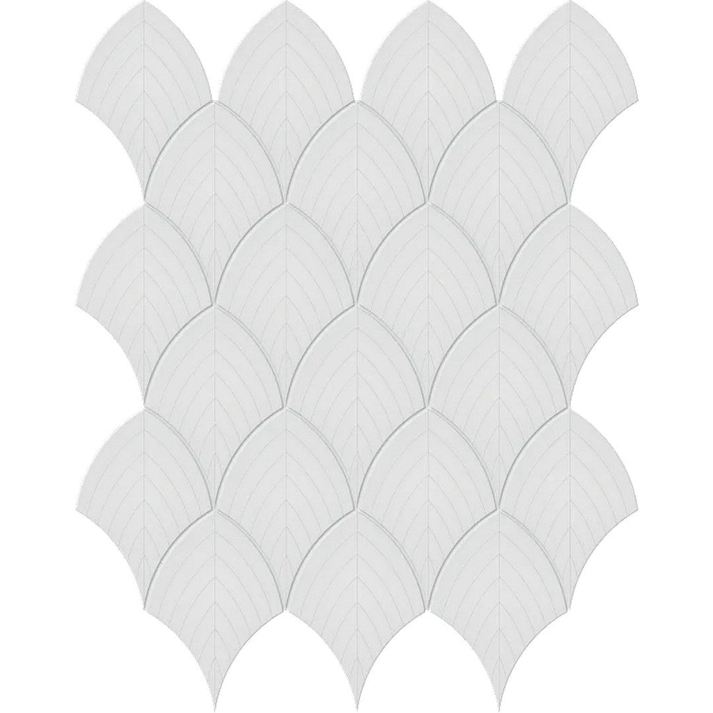 Arizona Tile S-Series 12x12 Glossy Glazed Porcelain Scallop Mosaic features a graceful curved pattern that adds flow and movement to interiors. Its glossy surface captures light beautifully, ideal for feature walls, bathroom accents, or decorative projects.