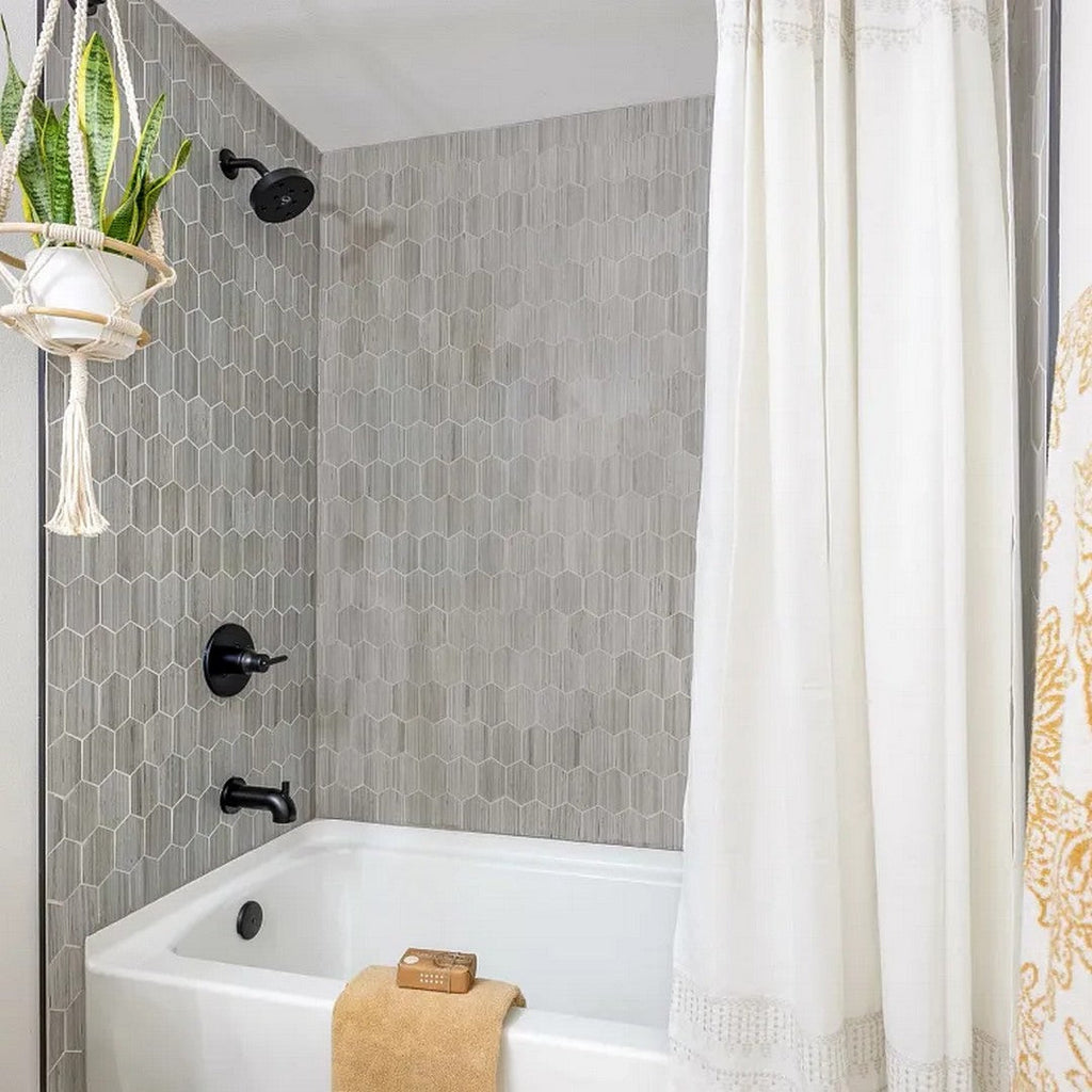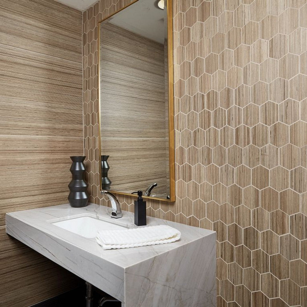 Arizona Tile Shibusa 11.3 x 11.3 Porcelain 3x4 Long Rhomboid Mosaic delivers artistic geometry and modern elegance. Its unique shape and subtle texture create depth and visual interest, ideal for accent walls, backsplashes, and sophisticated interior designs.