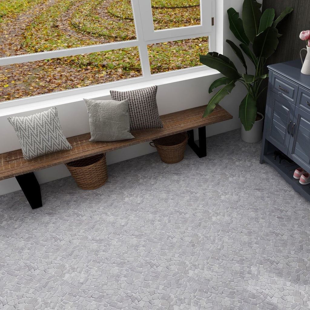Bati Orient USA Ancient 12" x 12" Matte Mini Opus Marble Mosaic showcases a delicate Mini Opus pattern in a beautiful matte marble mosaic, offering a subtle yet luxurious texture for bathroom floors and shower walls, available as a timeless 12x12 natural stone tile from the Ancient collection.