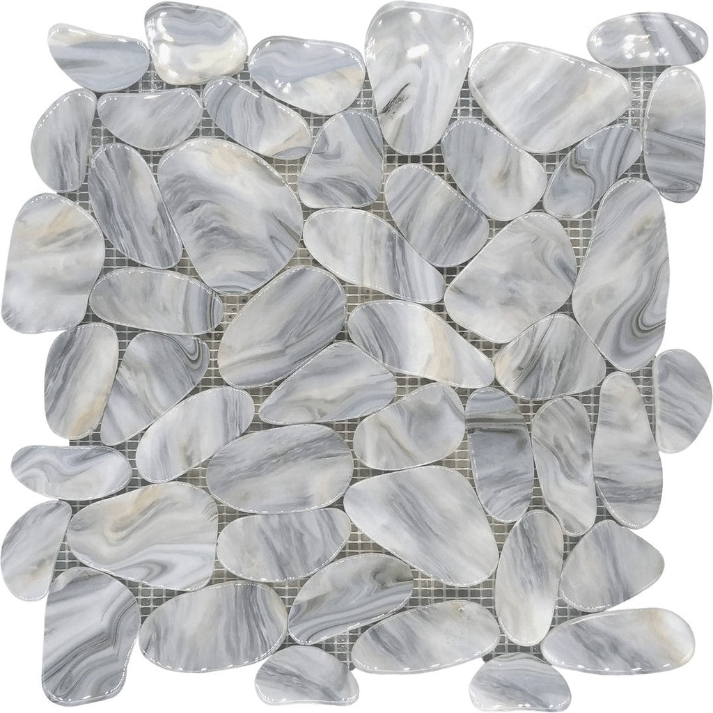 Bati Orient USA Bali 12" x 12" Reconstituted Decorated Pebble Natural Stone Mosaic introduces artistic flair with a Reconstituted Decorated Pebble mosaic, featuring unique patterns or colors integrated into the stone, offering a creative and durable 12x12 tile for decorative floor inlays and walls.
