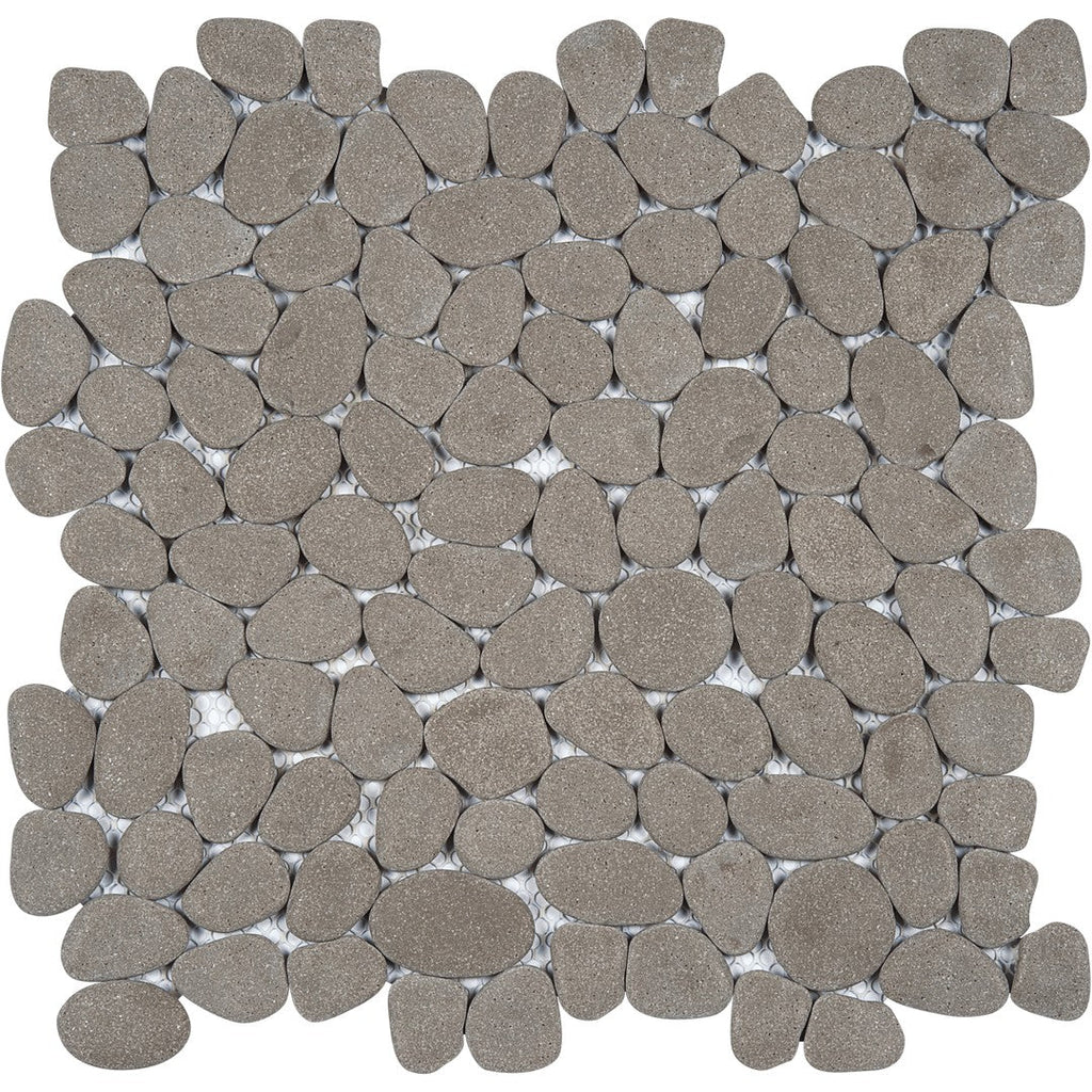 Bati Orient USA Bali 12" x 12" Reconstituted Pebble Natural Stone Mosaic offers the classic round pebble look in a strong, reconstituted natural stone mosaic, ensuring consistency and durability for pool areas and bathroom floors, available in a resilient 12x12 tile format.