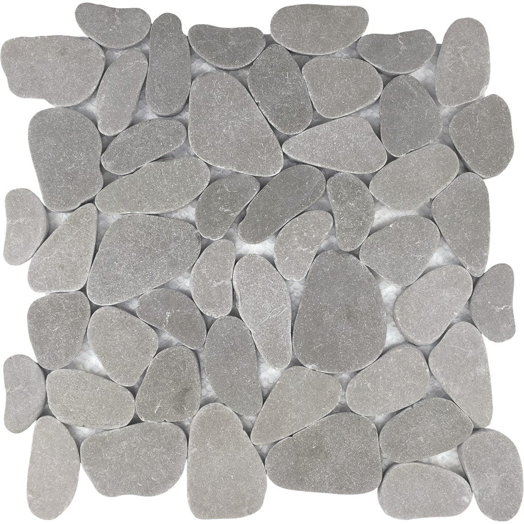 Bati Orient USA Bali 12" x 12" Reconstituted XL Sliced Natural Stone Mosaic utilizes large, flattened stones in a Reconstituted XL Sliced Natural Stone mosaic, providing a broad, smooth pebble look that is perfect for contemporary, low-grout natural stone flooring in a 12x12 sheet.