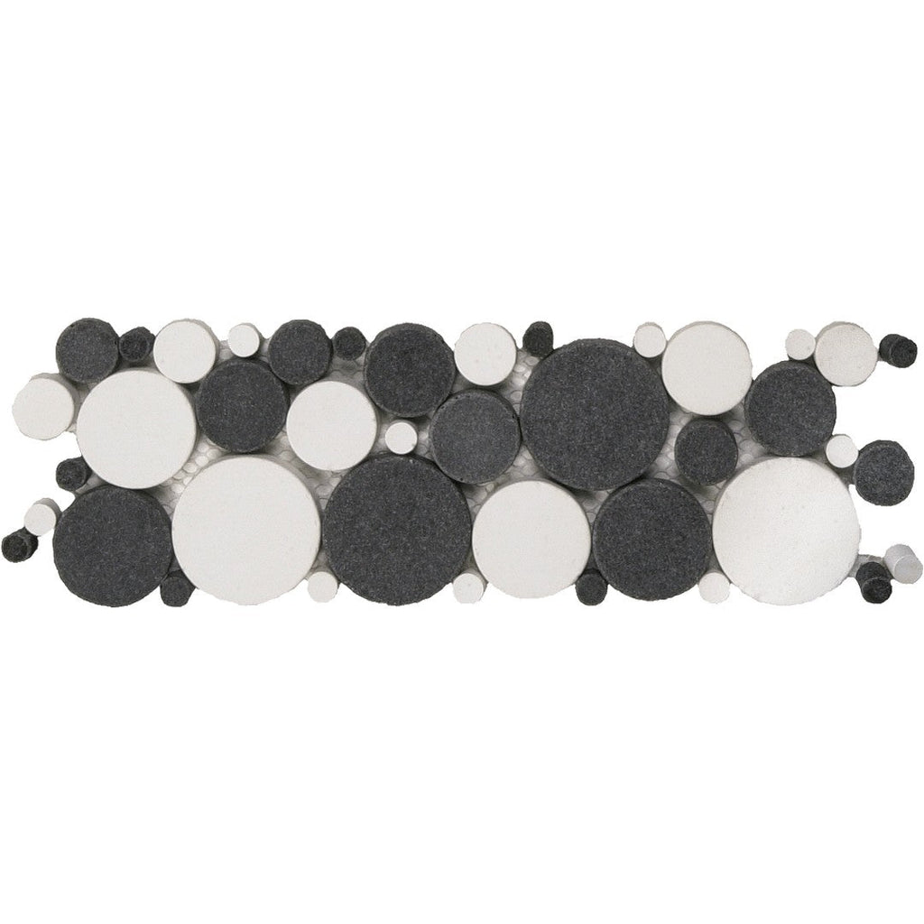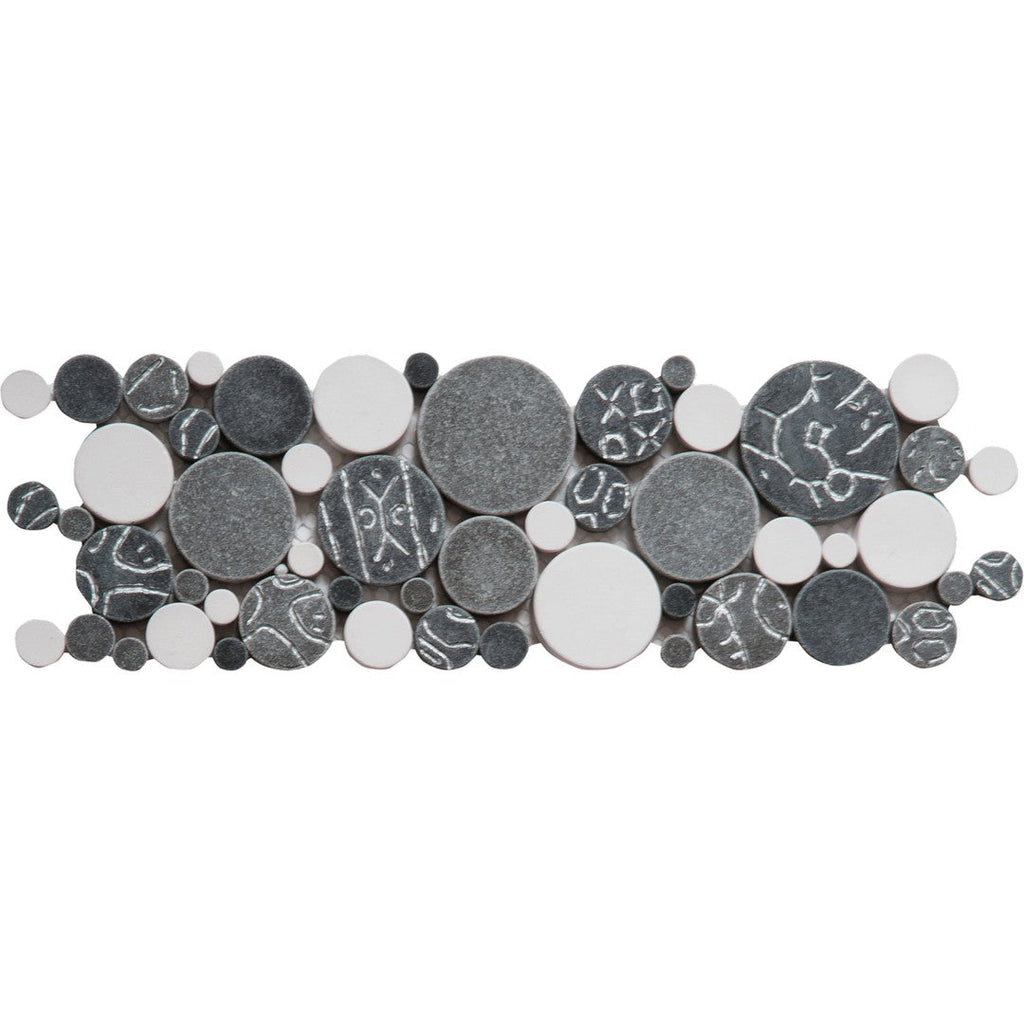 Bati Orient USA Exotic 4" x 12" Reconstituted Round Natural Stone Mosaic Border provides a refined finishing touch, featuring the organic look of reconstituted round natural stone in a convenient border format. This 4" x 12" strip can be used to delineate areas or complete a wall installation with a clean, earthy edge. Incorporate this stylish Bati Orient natural stone border for a polished design.