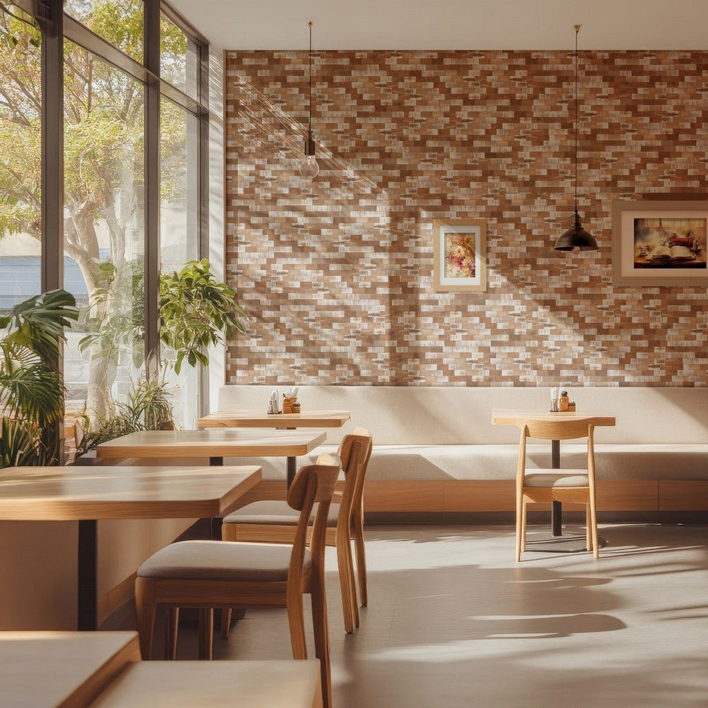 Bati Orient USA Linear Glass 13" x 14.4" Interlocking Wood Brick Mosaic offers a large, striking pattern that combines the visual warmth of wood grain with the durable, easy-to-clean qualities of interlocking glass brick. This oversized 13" x 14.4" sheet is perfect for creating a dramatic feature wall or floor with a rustic, linear feel. Capture the look of wood with this robust Bati Orient interlocking glass wood mosaic.