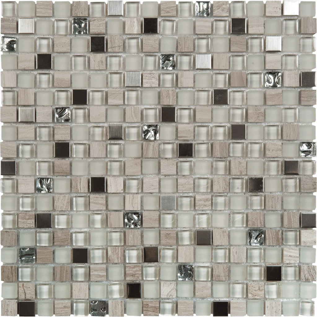 Bati Orient USA Terrazzo 12" x 12" Matte & Glossy Steel & Glass 0.63" Mosaic blends the industrial sleekness of steel with the clean reflection of glass in a tiny, refined square pattern. This modern steel and glass mosaic is perfect for a cutting-edge design. Shop Bati Orient USA mixed-finish metal tiles.