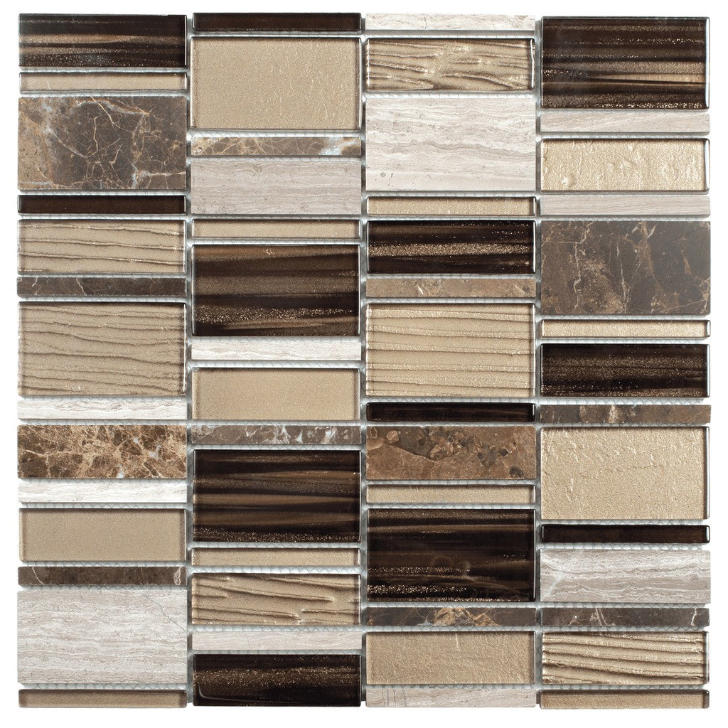 Bati Orient USA Terrazzo 12" x 12" Mixed Rectangle Glass & Marble Mosaic creates a linear, modern feel with various sizes of rectangle pieces in a glass and marble blend. This contemporary rectangle mixed-material mosaic is excellent for linear backsplashes. Find Bati Orient USA mixed-size glass and marble tiles.