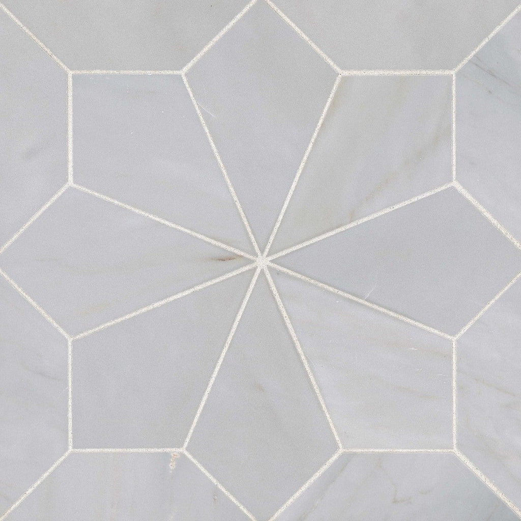 Bedrosians Blomma 12" x 12" Marble Honed Mosaic blends floral-inspired patterns with the natural elegance of honed marble. The 12" x 12" sheet format simplifies installation, while the intricate design creates a stunning focal point for bathrooms, entryways, and kitchens. Each tile showcases the subtle variations of marble, offering a luxurious yet organic touch to traditional and modern spaces alike.