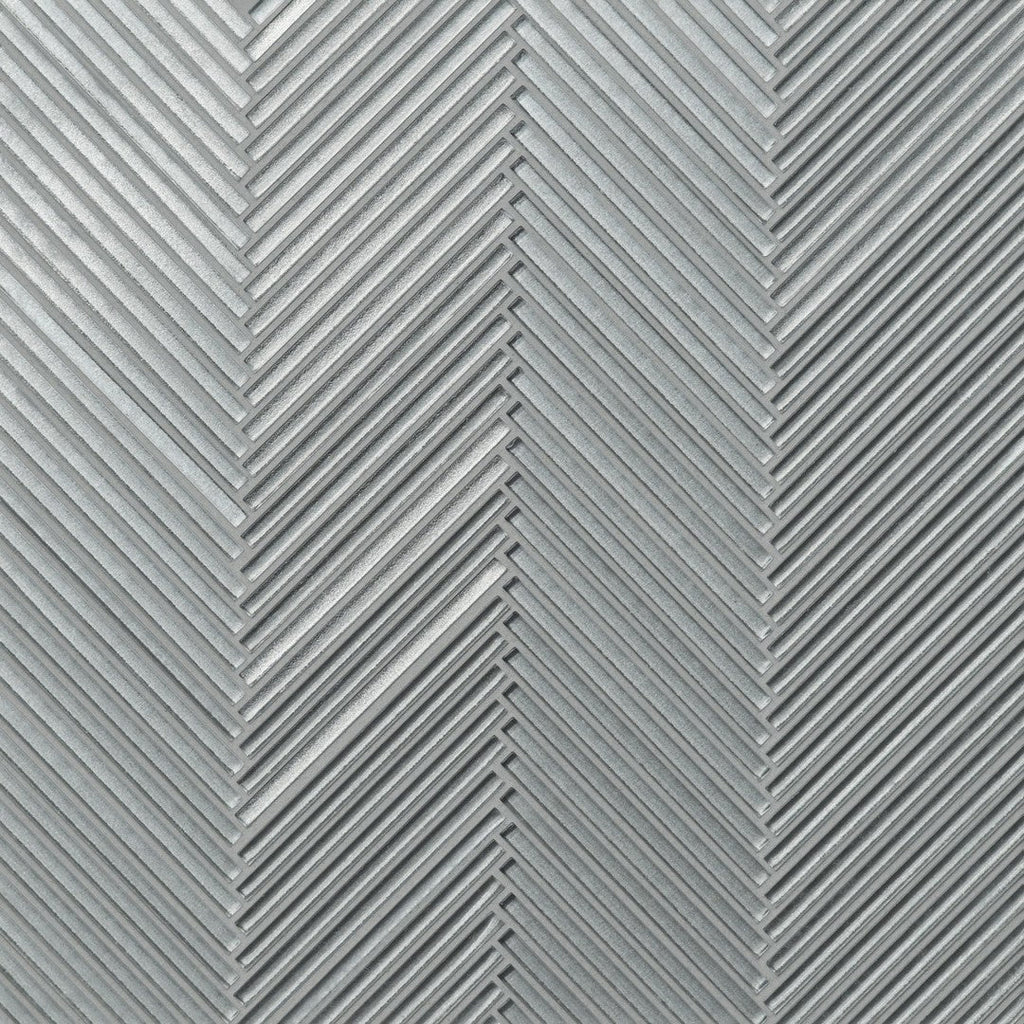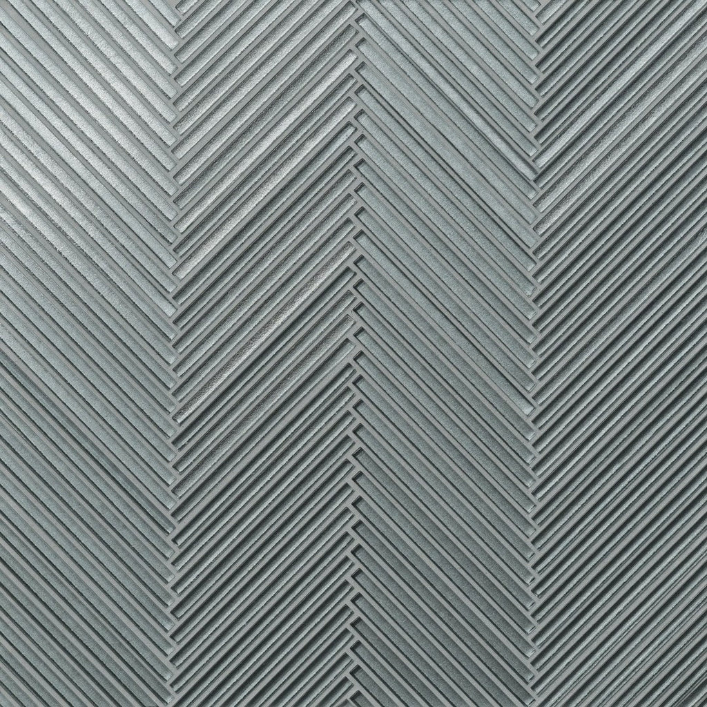 Bedrosians Kaikos 11.25" x 11.25" Skinny Chevron Glass Mosaic adds bold geometric interest with sleek glass construction, making it a striking option for accent walls, shower features, and backsplashes in contemporary interior designs.