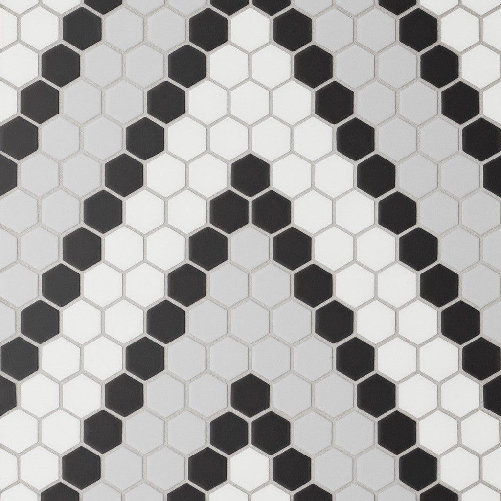 Bedrosians Le Cafe 10.5" x 12.75" Matte Porcelain 1" Mosaic Deco Design 8 showcases exquisite detailing with its intricate pattern rendered in 1" matte porcelain mosaics on 10.5" x 12.75" sheets. These decorative mosaics create breathtaking feature installations that elevate kitchen backsplashes, bathroom walls, and commercial spaces with artistic sophistication. The matte finish provides a refined, glare-free surface that highlights the design's complexity while ensuring durability and easy maintenance. Perfect for projects seeking distinctive surfaces, these deco mosaics offer a perfect marriage of artisanal craftsmanship and contemporary design. The sheet-mounted format ensures pattern consistency during installation while allowing for creative applications. Whether used as bold statements or subtle accents, these mosaics provide endless possibilities for personalizing interiors with unique, pattern-driven surfaces that transcend ordinary tile installations.