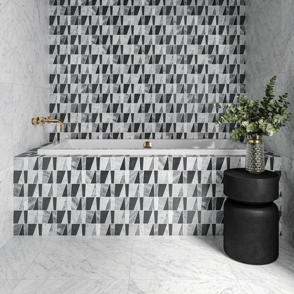 The Bedrosians Modni 11.75" x 12.75" Zayden Honed Marble Mosaic Tile features a distinctive rectangular shape for dynamic layouts. Its honed marble surface brings subtle texture and refinement to showers, backsplashes, and feature walls. A perfect blend of artistry and durability.