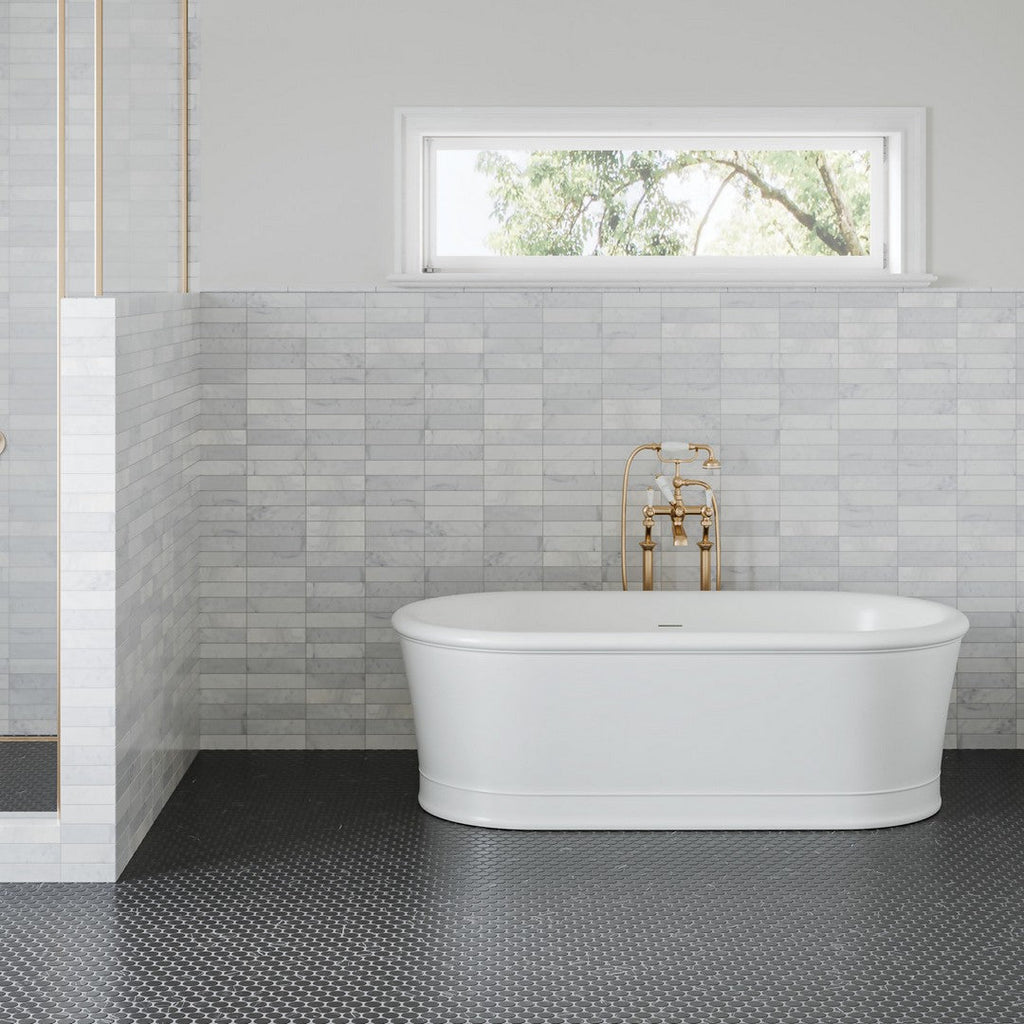 The Bedrosians Monet 11.75 x 11.75 Honed Marble Mosaic Tile offers a classic square format with the refined beauty of honed marble. This mosaic showcases delicate veining and a soft matte finish, perfect for creating serene, spa-like bathrooms or elegant kitchen accents. The 11.75-inch size provides a balanced look that works well in both residential and commercial spaces, from feature walls to flooring borders. The natural variations in the marble ensure each installation is unique, while the honed surface resists wear and maintains its elegance over time. Easy to clean and maintain, this tile combines practicality with high-end aesthetics. Its neutral palette pairs effortlessly with various color schemes, making it a versatile choice for designers seeking timeless sophistication. Whether used in modern or traditional settings, this Bedrosians Monet mosaic elevates interiors with its quiet luxury.