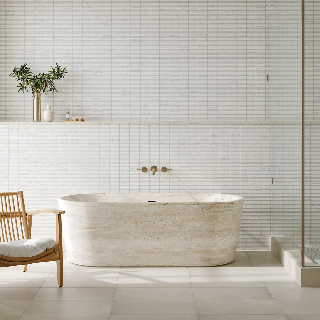 The Bedrosians Monet 11.75 x 12 Honed Marble Mosaic Tile introduces a slightly elongated silhouette for dynamic visual interest. Perfect for vertical installations in showers or horizontal layouts in backsplashes, this tile’s unique proportions create movement and depth. The honed marble surface offers a velvety texture that feels luxurious underfoot and resists slipping. Measuring 11.75 by 12 inches, this mosaic bridges traditional and contemporary aesthetics, making it adaptable to various design themes. The natural stone’s durability ensures it stands up to daily wear while maintaining its elegant appearance. A superb choice for those seeking marble’s classic beauty with a modern twist.