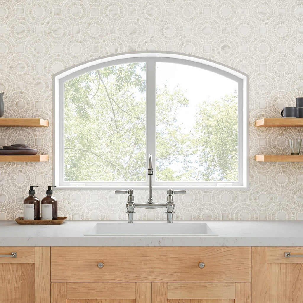 The Bedrosians Solis 14.25" x 14.25" Solis Honed Marble Blend Mosaic Tile brings luxurious elegance to any space with its premium marble composition. This 14.25-inch square mosaic features a blend of honed marble pieces that create subtle texture and visual interest. The honed finish provides a soft matte surface that diffuses light beautifully while resisting fingerprints and smudges. Perfect for creating sophisticated backsplashes, shower walls, and flooring accents in both residential and commercial settings. The natural marble variations ensure each installation is unique with organic veining and color tones. Durable stone construction withstands moisture and daily wear when properly sealed. Easy to maintain with regular cleaning and periodic sealing. The neutral color palette blends seamlessly with various design styles from traditional to contemporary. Designers appreciate how this mosaic offers the timeless beauty of marble in a versatile format. Pre-mounted sheets simplify installation while maintaining perfect alignment. Creates a high-end look without the maintenance concerns of polished marble.
