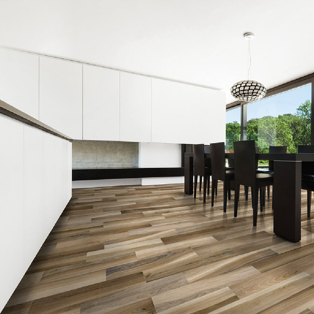 Crossville Amaya Wood 6x36 Matte Porcelain Tile reinforces natural wood character with extended plank length for deeper spatial rhythm. Ideal for residential floors, hospitality suites, bars, and wall features where a continuous wood read is desired without organic failure. The 6x36 scale intensifies line and directionality across open plans. Built for long-term resistance to wear, moisture, and interior load.