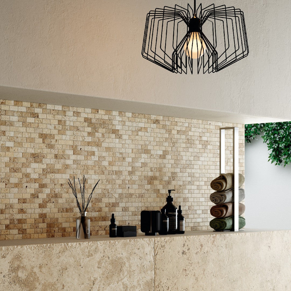 Crossville Studios features the Aurum 12x12 Natural Porcelain 1x2 Offset Mosaic, a versatile sheet format ideal for shower floors, accent borders, spa surfaces, and decorative walls. The offset pattern adds visual movement while maintaining a clean, modern look inspired by natural stone. With superior resistance to moisture, thermal change, and everyday wear, this porcelain mosaic delivers long-lasting beauty in both residential and commercial projects. Aurum mosaics provide texture, performance, and sophisticated style in one format.