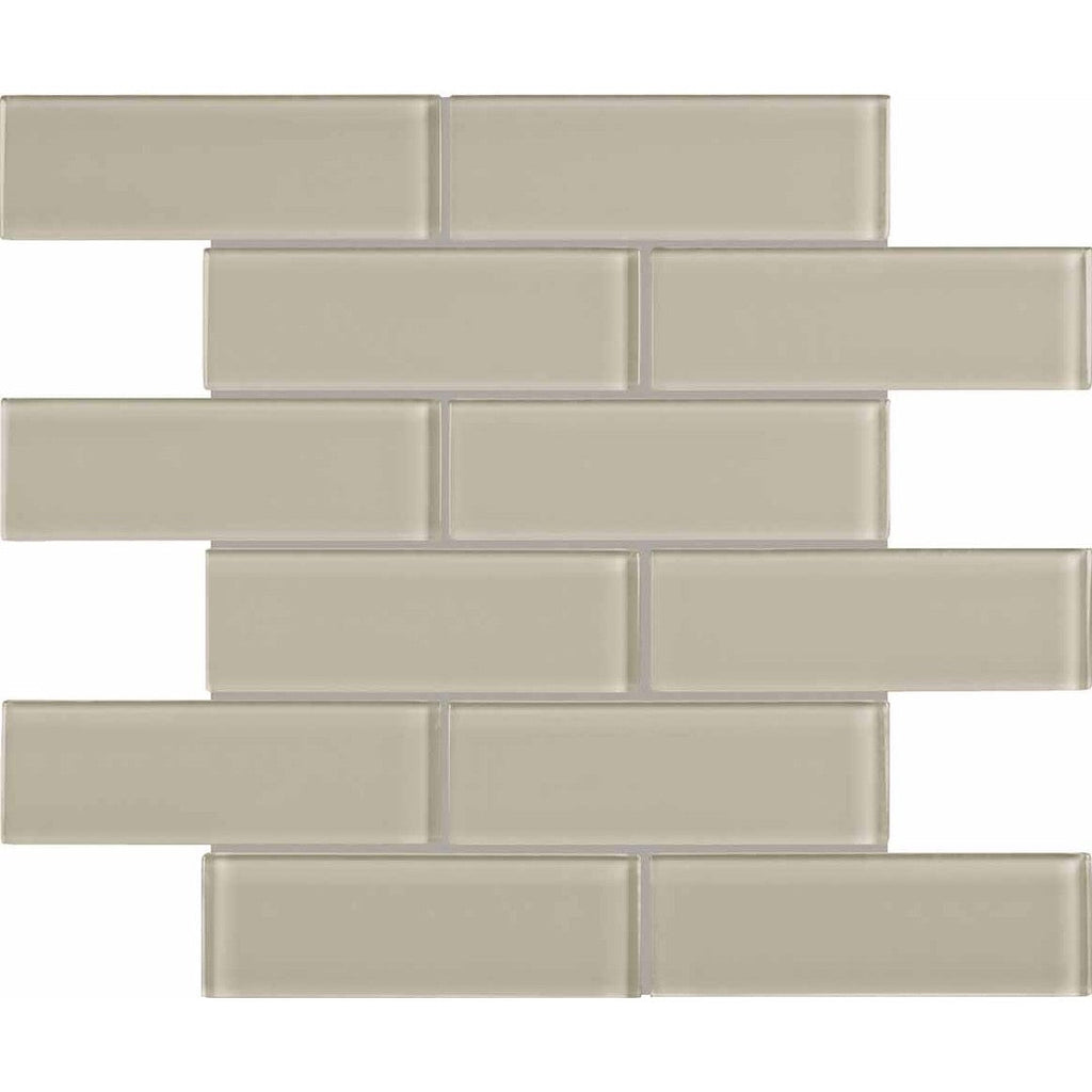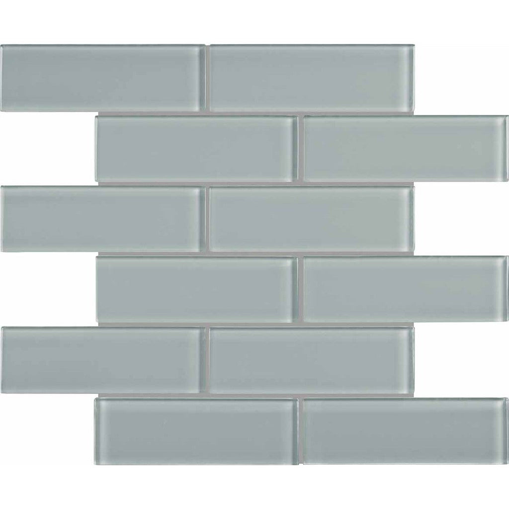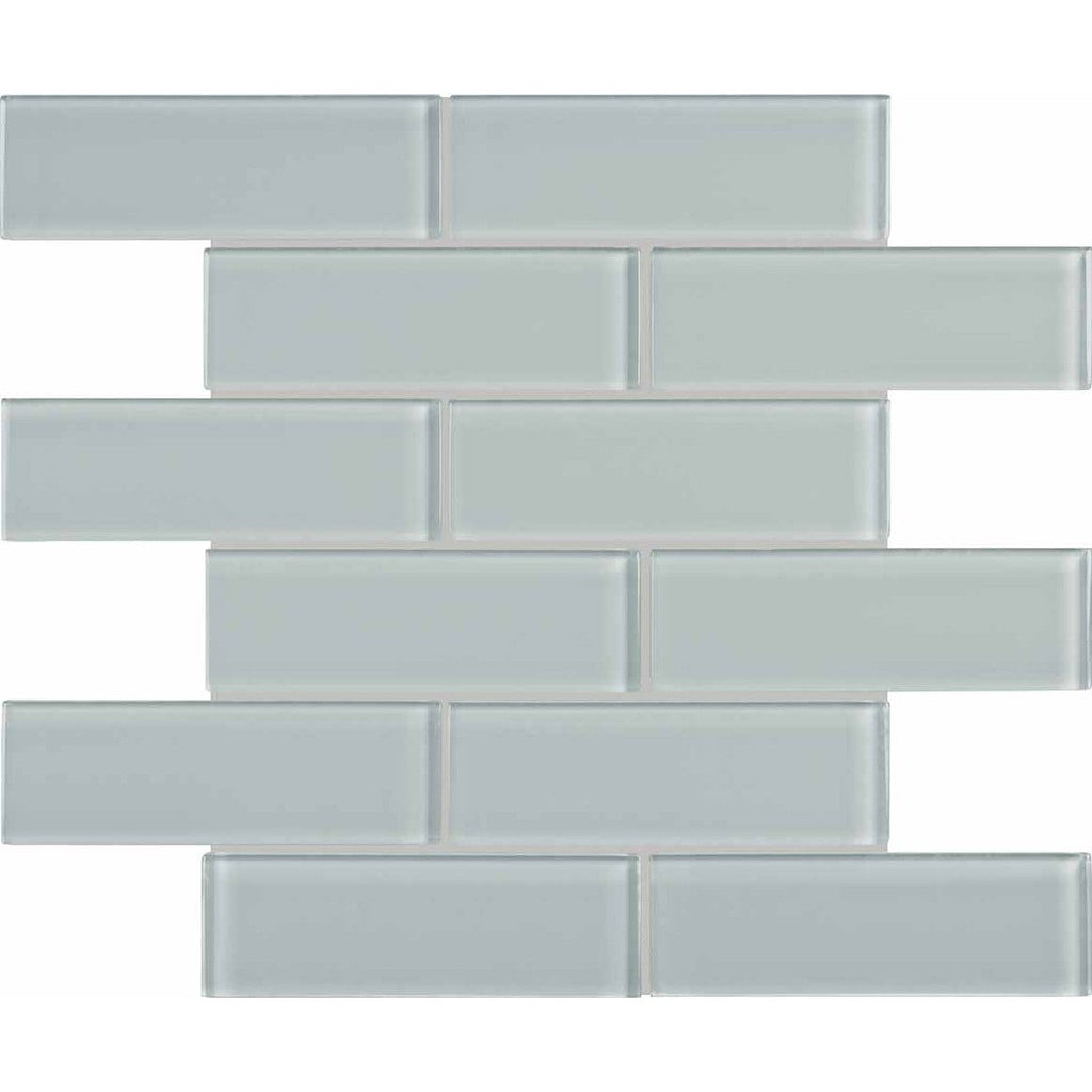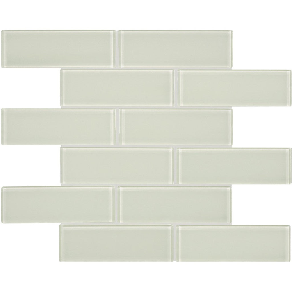 Crossville Elements Glass Posh 12x12 Gloss Glass 2x6 Brick Mosaic blends classic brick styling with modern glass shine. Its structured layout adds refined texture perfect for feature walls and backsplashes.