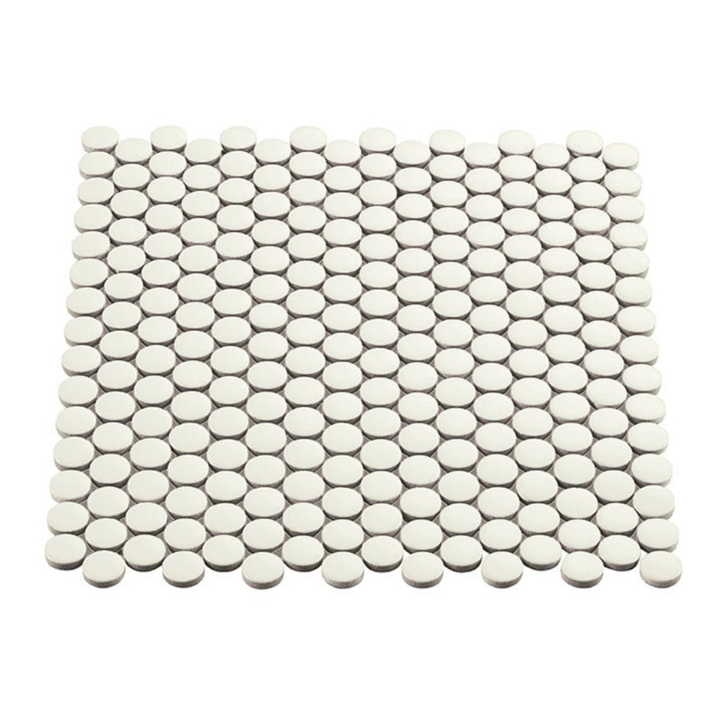 Crossville Multiplier 11.5x12.76 Matte Porcelain 0.75 Penny Round Mosaic provides a modern interpretation of a classic penny round design. With a smooth matte finish, this durable porcelain mosaic is ideal for residential and commercial spaces seeking texture, style, and long-lasting performance.
