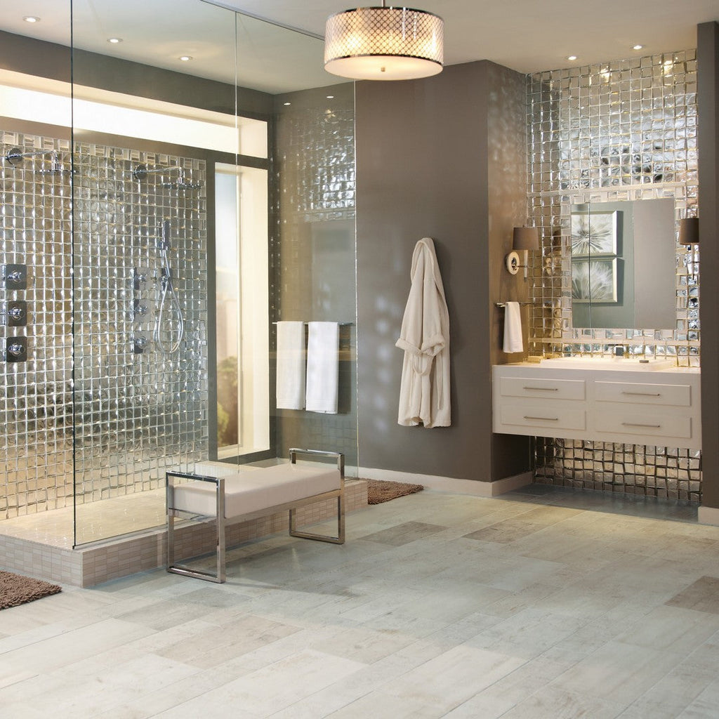 Crossville Studios Sideview Glass 12" x 12" Polished Glass 3" Mosaic is a high-impact surfacing solution that brings depth and brilliance to any interior. The polished glass surface creates a dynamic play of light and shadow, making it a premier choice for luxury shower walls, kitchen backsplashes, and focal points.