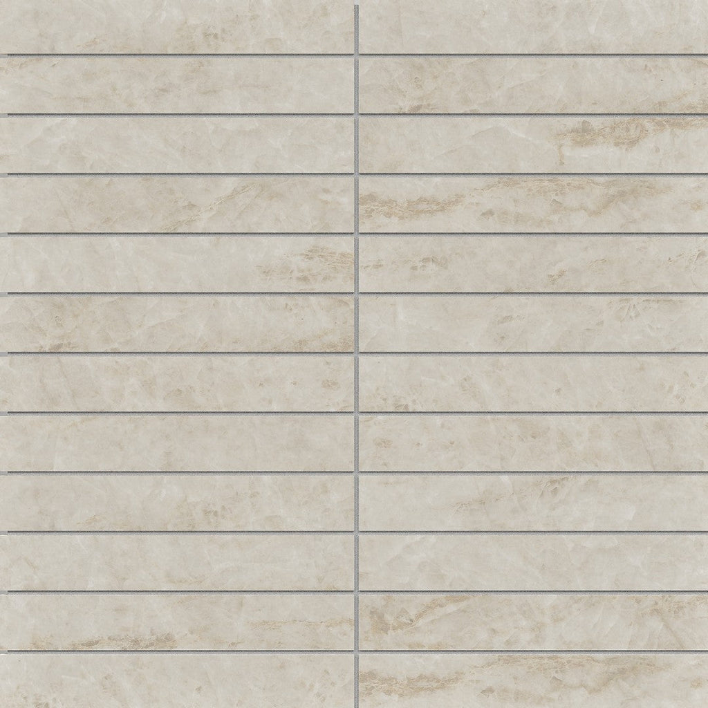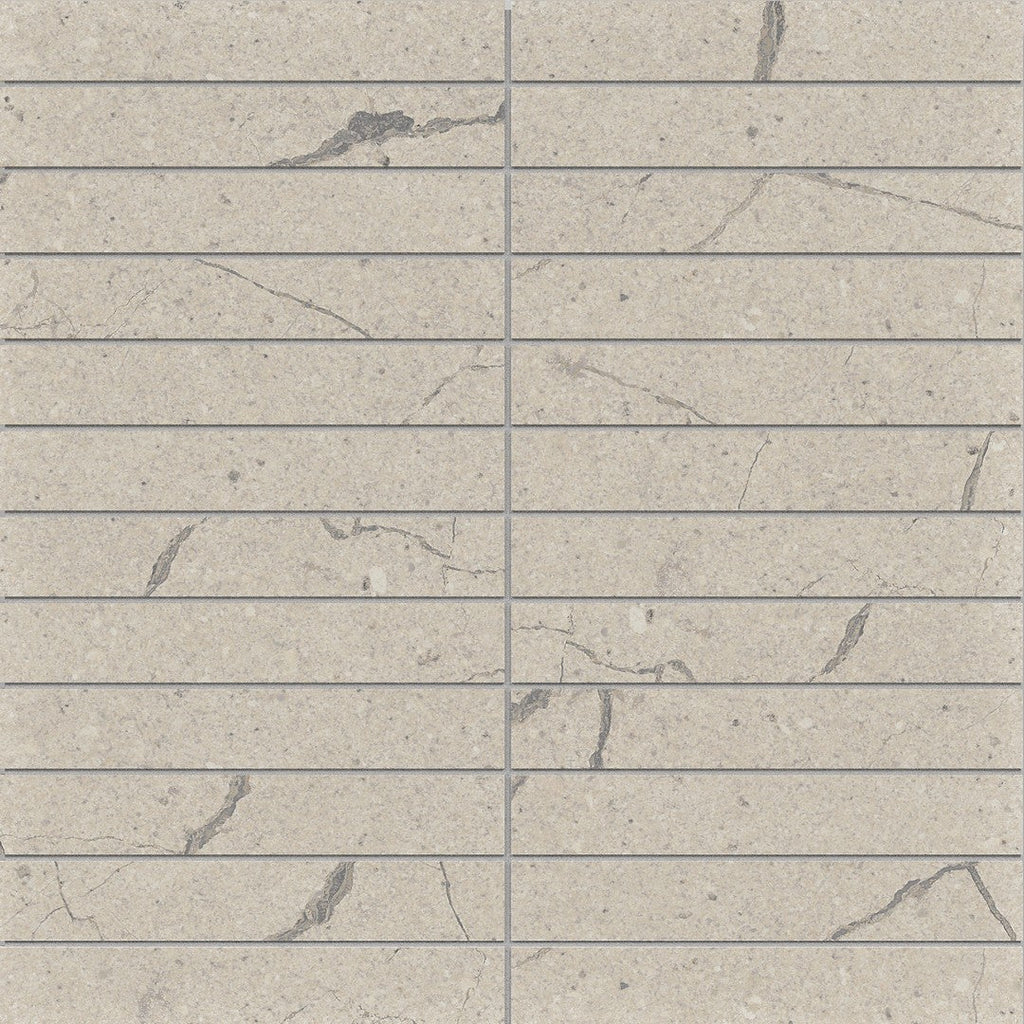 Crossville Studios Sociale 11" x 12" Feather Soft 1x6" Stacked Porcelain Mosaic features a delicate, tactile finish that invites touch and creates a sense of calm. This stacked mosaic format is perfect for contemporary bathroom walls or kitchen backsplashes where a soft, organic aesthetic is desired.