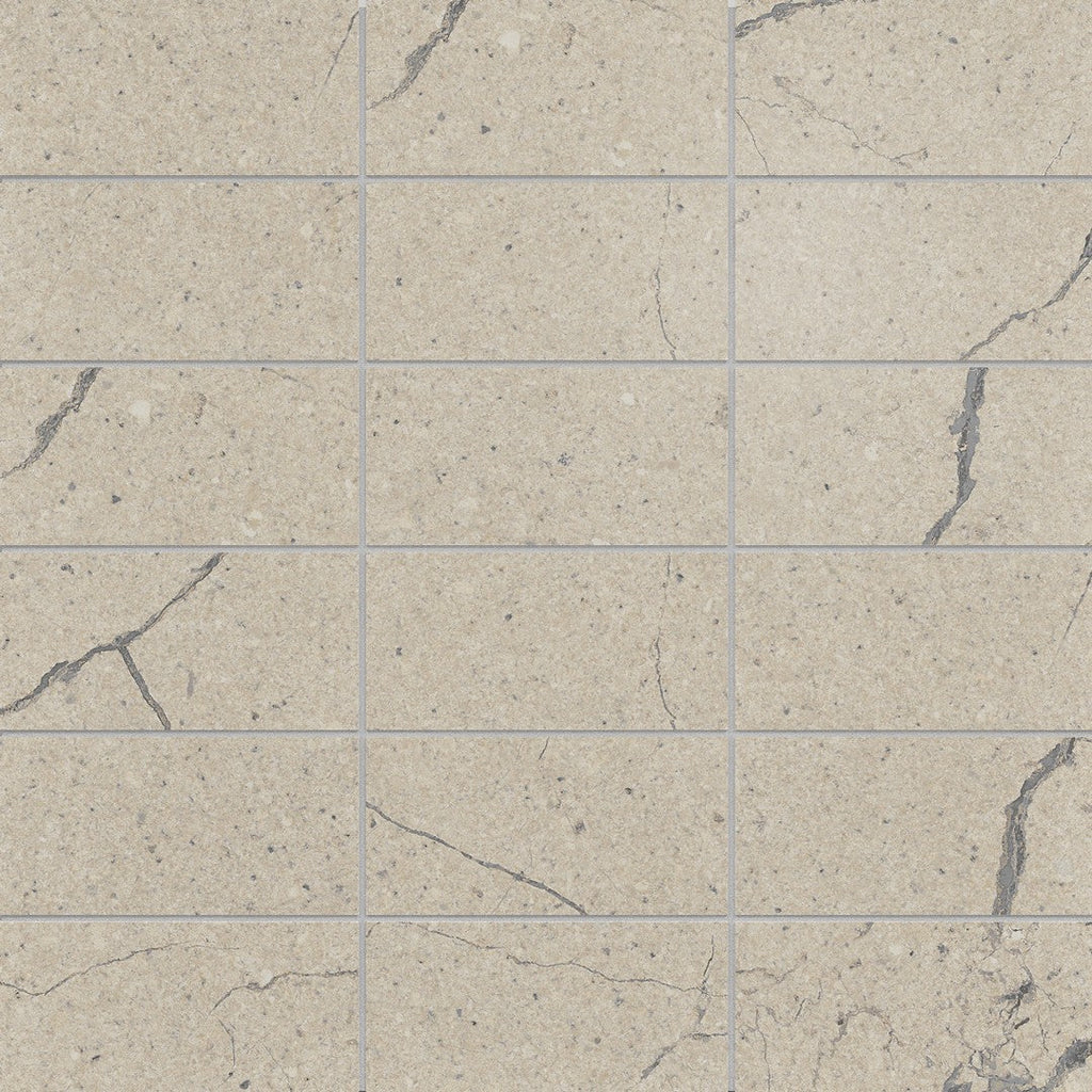 Crossville Studios Sociale 12" x 12" Feather Soft 2x4" Stacked Porcelain Mosaic provides a classic brick-pattern look with an innovative, soft-touch finish. This mosaic is ideal for creating a cozy, high-end atmosphere in residential spaces, offering the durability of porcelain with a uniquely gentle surface texture.