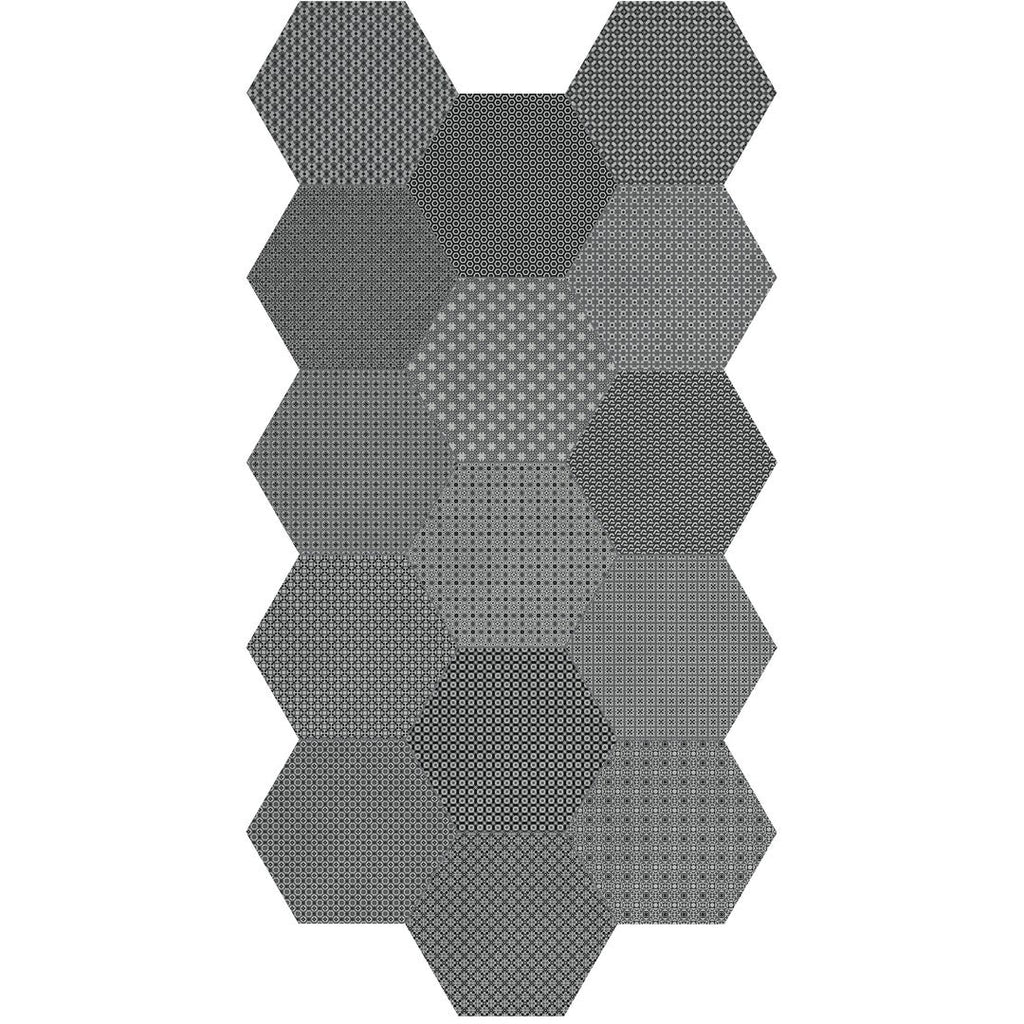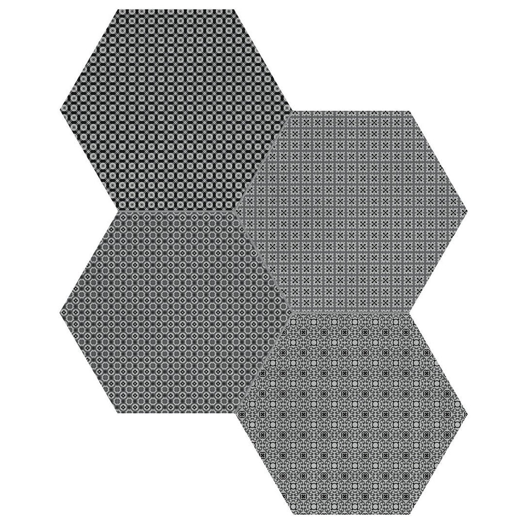 Crossvillestudios Stile2 Tapestri 8.5" x 10" Matte Hexagon Deco Porcelain Tile combines a trendy hexagonal shape with stunning decorative patterns for a high-impact design statement. These matte porcelain tiles are perfect for creating a "rug" effect on a floor or a captivating feature wall in a bathroom. Engineered to be both beautiful and resilient, this decorative hexagon tile offers a unique blend of geometric modernity and artisanal charm that is built to last.