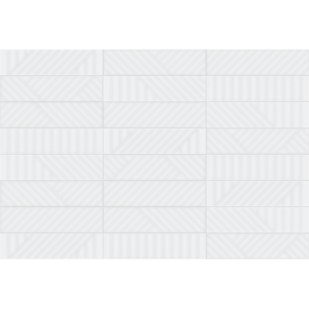 Crossvillestudios Stile2 Visible Vibes 3" x 12" Glossy Maze Pattern Ceramic Wall Tile offers a captivating geometric texture that serves as a bold focal point for any room. The "Maze" pattern creates a complex play of light and shadow across the tile's glossy surface, adding an architectural element to your walls. Ideal for modern backsplashes and shower surrounds, this 3x12 ceramic tile provides a sophisticated and energetic design that elevates standard wall installations.