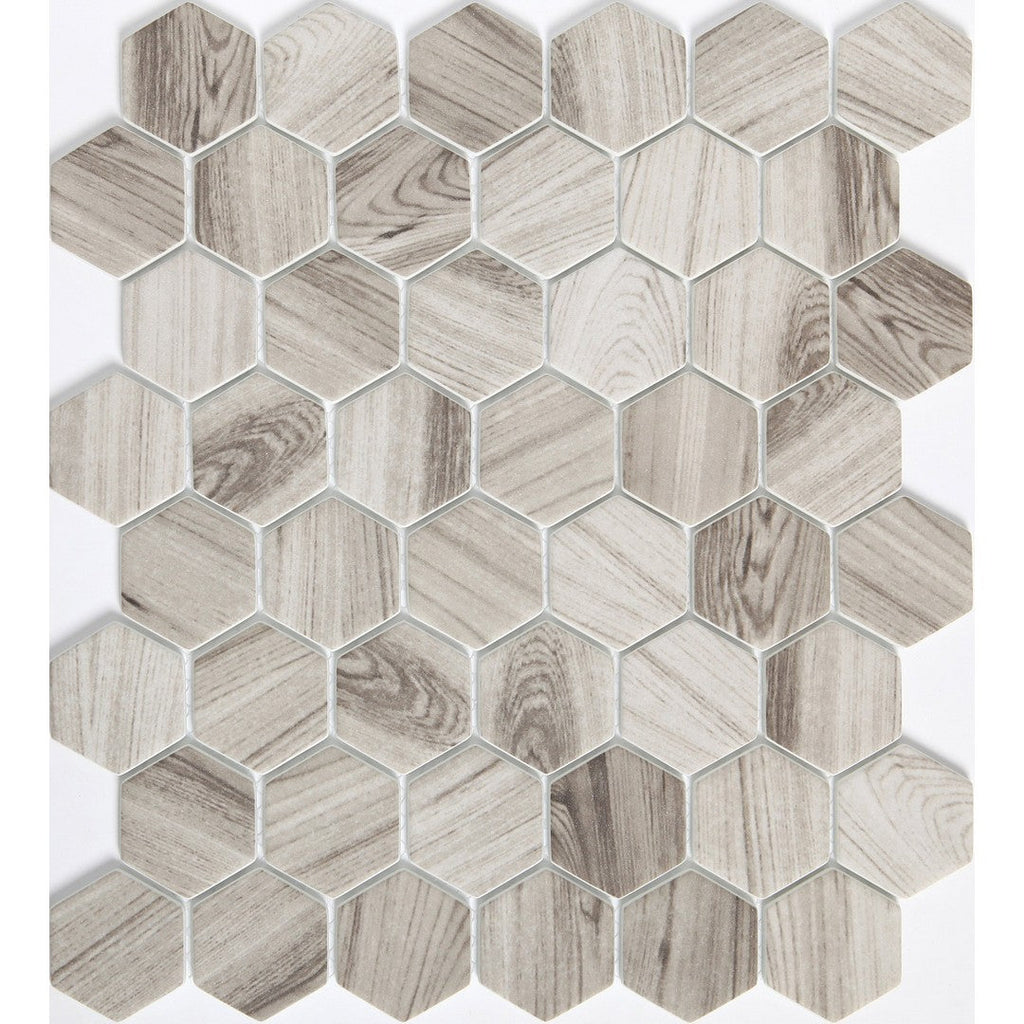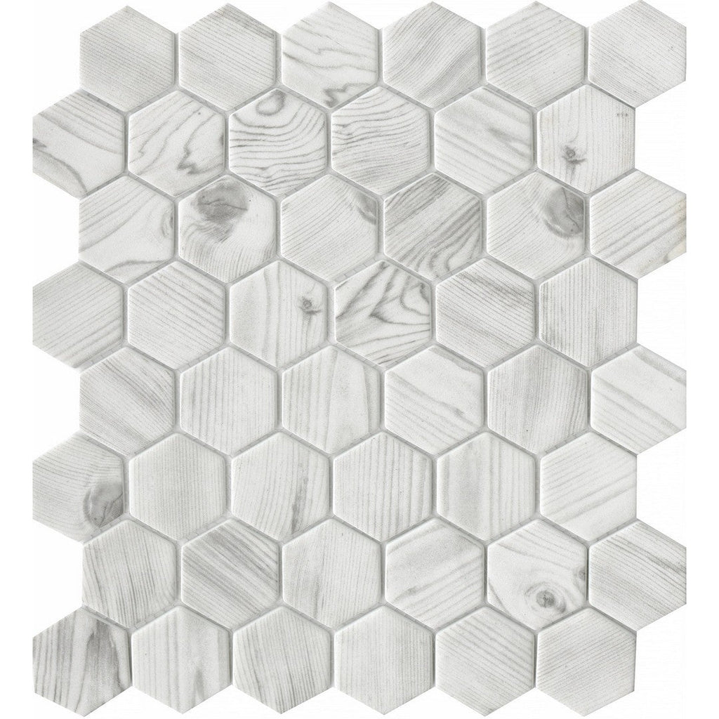 Emser Echo 12" x 14" Matte Glass 2" Hexagon Mix Mosaic features a mix of hexagon shapes in a matte glass finish, creating a dynamic and modern look. This mosaic is versatile and can be used to add texture and style to various surfaces. Emser Echo's hexagon mix is ideal for creating unique design statements in contemporary spaces.