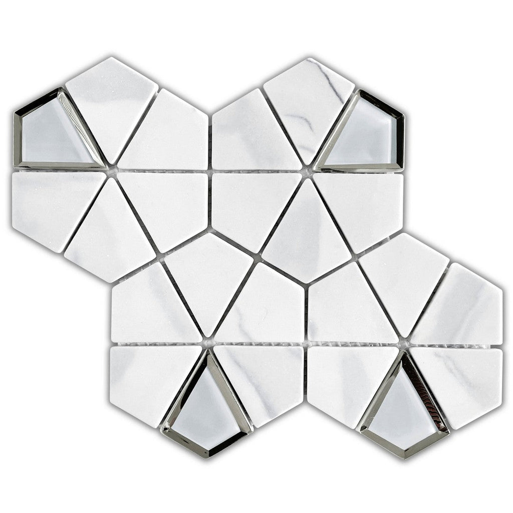 Emser L'Amour 9" x 11" Glass Kaleidoscope Mosaic is a vibrant and playful choice for your interiors. The kaleidoscope pattern brings a burst of color and creativity, making it ideal for accent walls or decorative features. This glass mosaic tile is not only visually striking but also durable and easy to maintain, perfect for any renovation project.