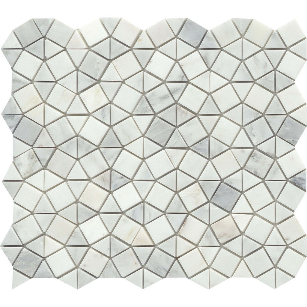 Emser Marble Winter Frost 12" x 12" Polished Marble Geometric Mosaic showcases a contemporary design that adds style to any space. This polished mosaic features geometric patterns that create a dynamic visual appeal, perfect for modern interiors. The cool tones of Winter Frost marble enhance the overall aesthetic, making it an excellent choice for kitchens, bathrooms, or feature walls. Emser Marble Winter Frost offers luxury and creativity in your design.