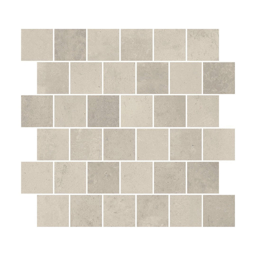 Happy Floors Tierra 12" x 13" Natural 2" Offset Porcelain Mosaic provides a unique, staggered look for floors and walls. This offset mosaic adds visual interest and texture, making it an ideal choice for shower pans or kitchen backsplashes. The natural porcelain finish ensures a durable, slip-resistant surface that is as practical as it is aesthetically pleasing.