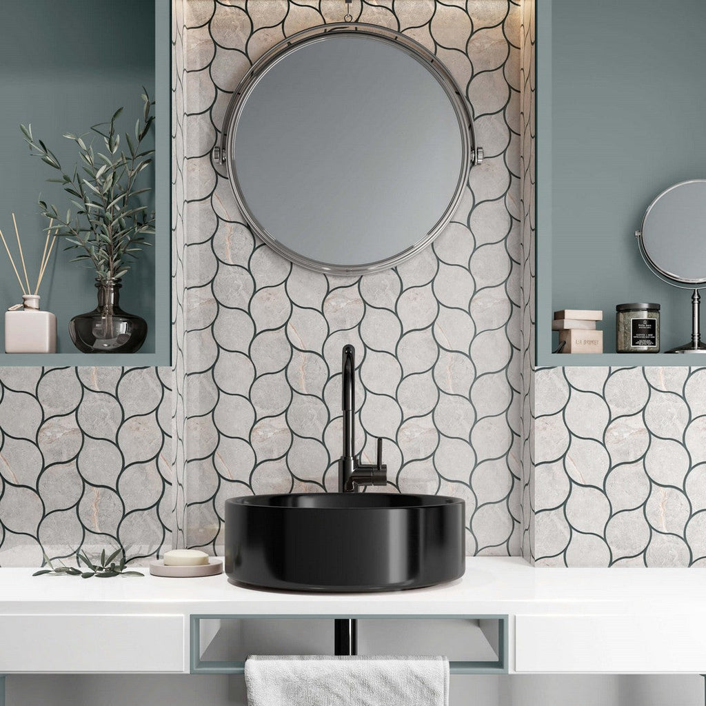 Happy Floors Toscana 11" x 13" Rectified Matte Leaf Porcelain Mosaic adds an artistic, organic flair to your interior design. The unique leaf-shaped pattern creates a stunning visual texture that works beautifully as a feature wall or accent in a shower. The matte finish enhances the natural feel of the design, making it a standout piece in the Toscana collection.