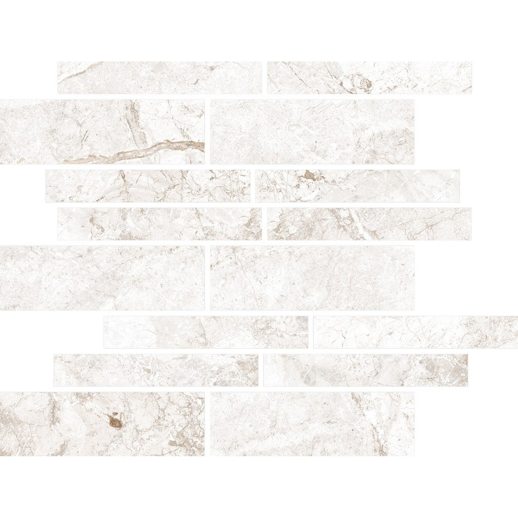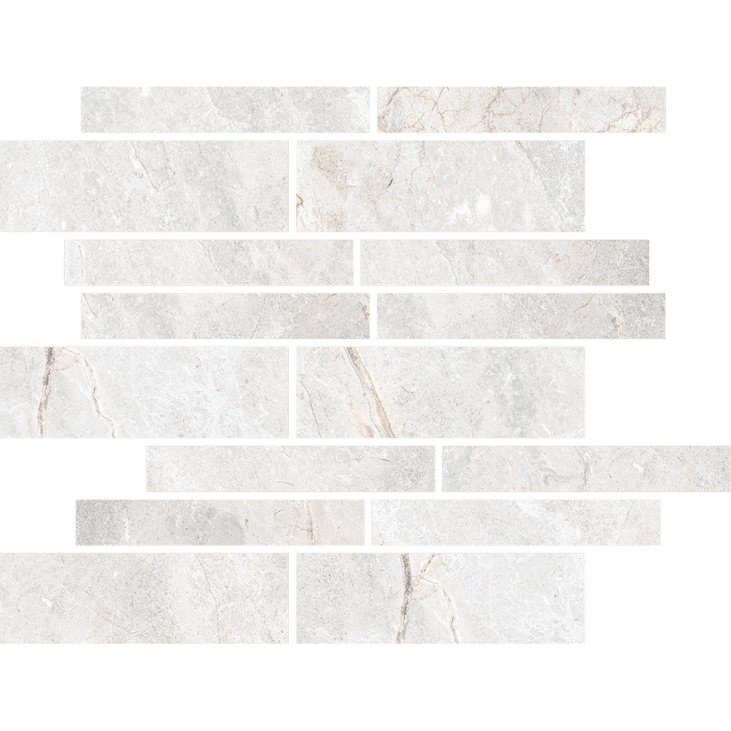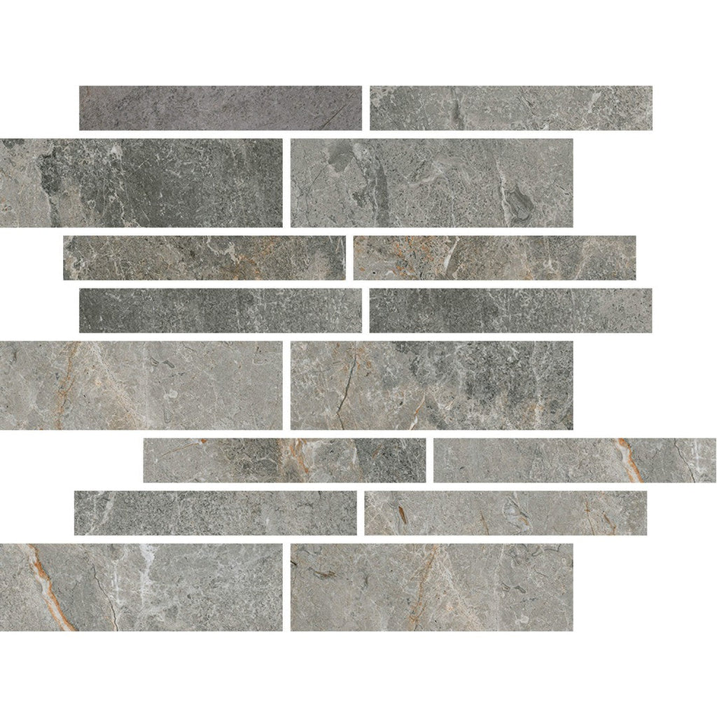 Happy Floors Toscana 11" x 13" Rectified Matte Muretto Porcelain Mosaic provides a sophisticated, stacked-stone look for modern interiors. This muretto mosaic is perfect for adding architectural interest to fireplace surrounds or kitchen backsplashes. The matte finish and rectified edges ensure a clean, high-end appearance that complements a wide range of contemporary color palettes.