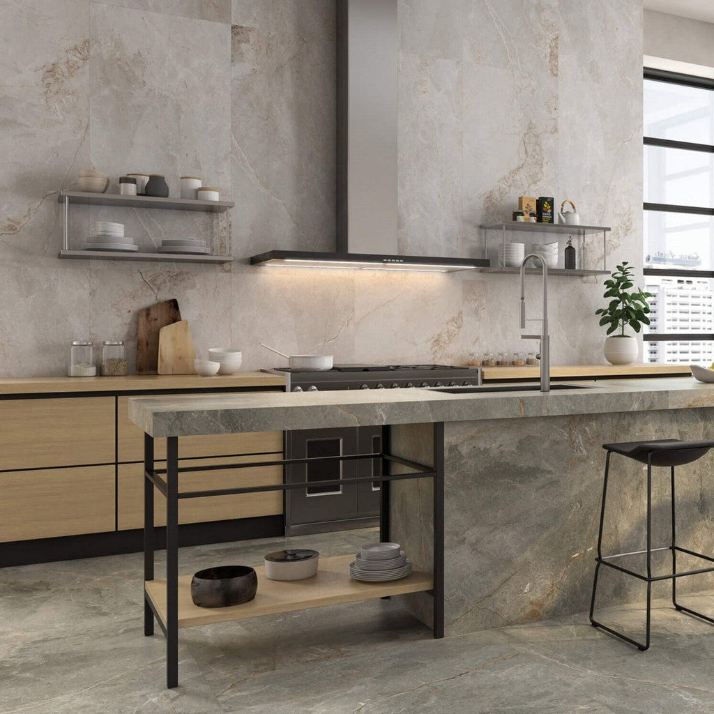 Happy Floors Toscana 24" x 48" Rectified Matte Porcelain Tile creates an expansive, high-end look on both floors and walls. The large-format design minimizes visual interruptions, making rooms feel more open and luxurious. This tile's matte finish and stone-like appearance provide a calm, neutral foundation for any interior design style, from minimalist to transitional.
