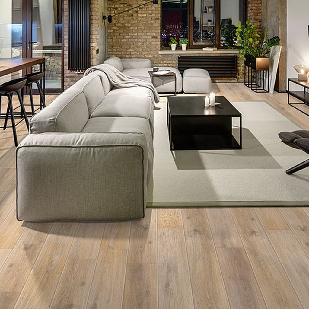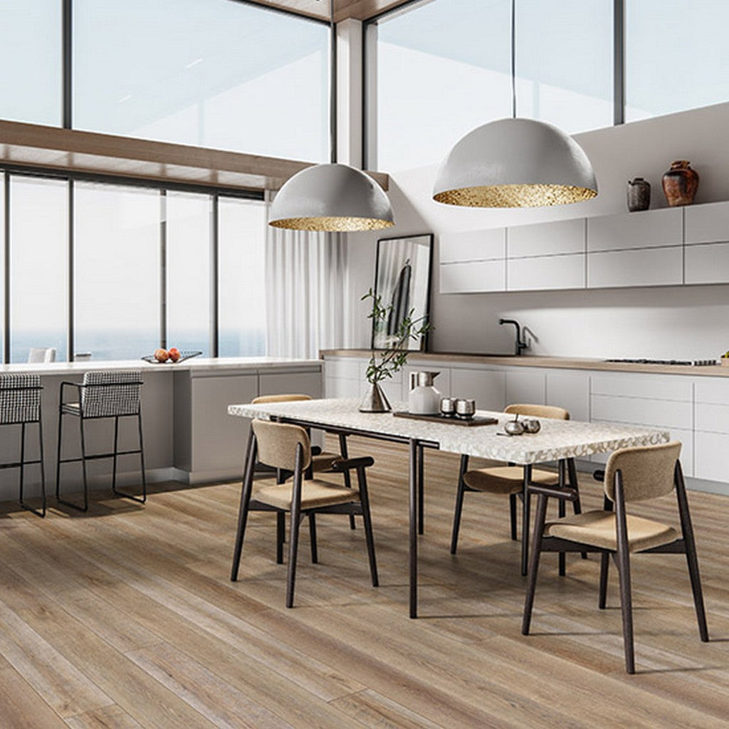 Johnson Bella Vista 7.63" Painted-Beveled EIR High Performance Laminate Plank offers a perfect blend of style, durability, and performance. The painted-beveled edges and enhanced embossed-in-register (EIR) texture provide a luxurious, natural wood look. This laminate plank is designed to withstand daily wear and tear while maintaining its elegance. Perfect for high-traffic areas, it offers both functionality and beauty, making it an ideal flooring solution for modern homes. With its high-performance features, Johnson Bella Vista ensures long-lasting durability and an easy maintenance experience, adding sophistication to any space.