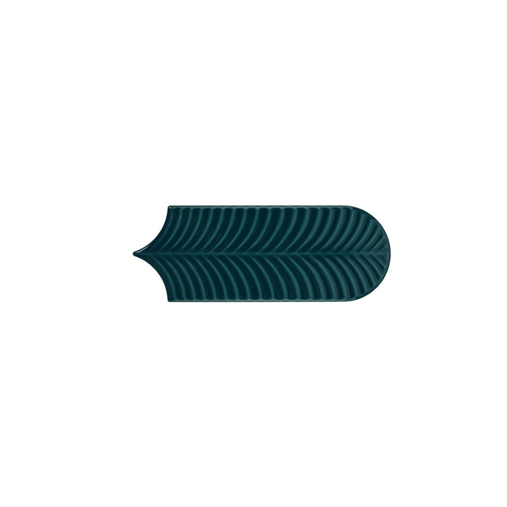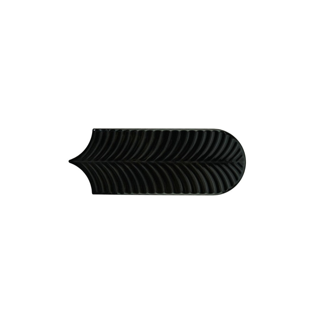 Keystone Alma Scale 3" x 8.5" Polished Ceramic Deco Tile adds artistic flair with its fish scale pattern and glossy surface. Great for feature walls or decorative accents, it brings dynamic movement and depth to your décor.