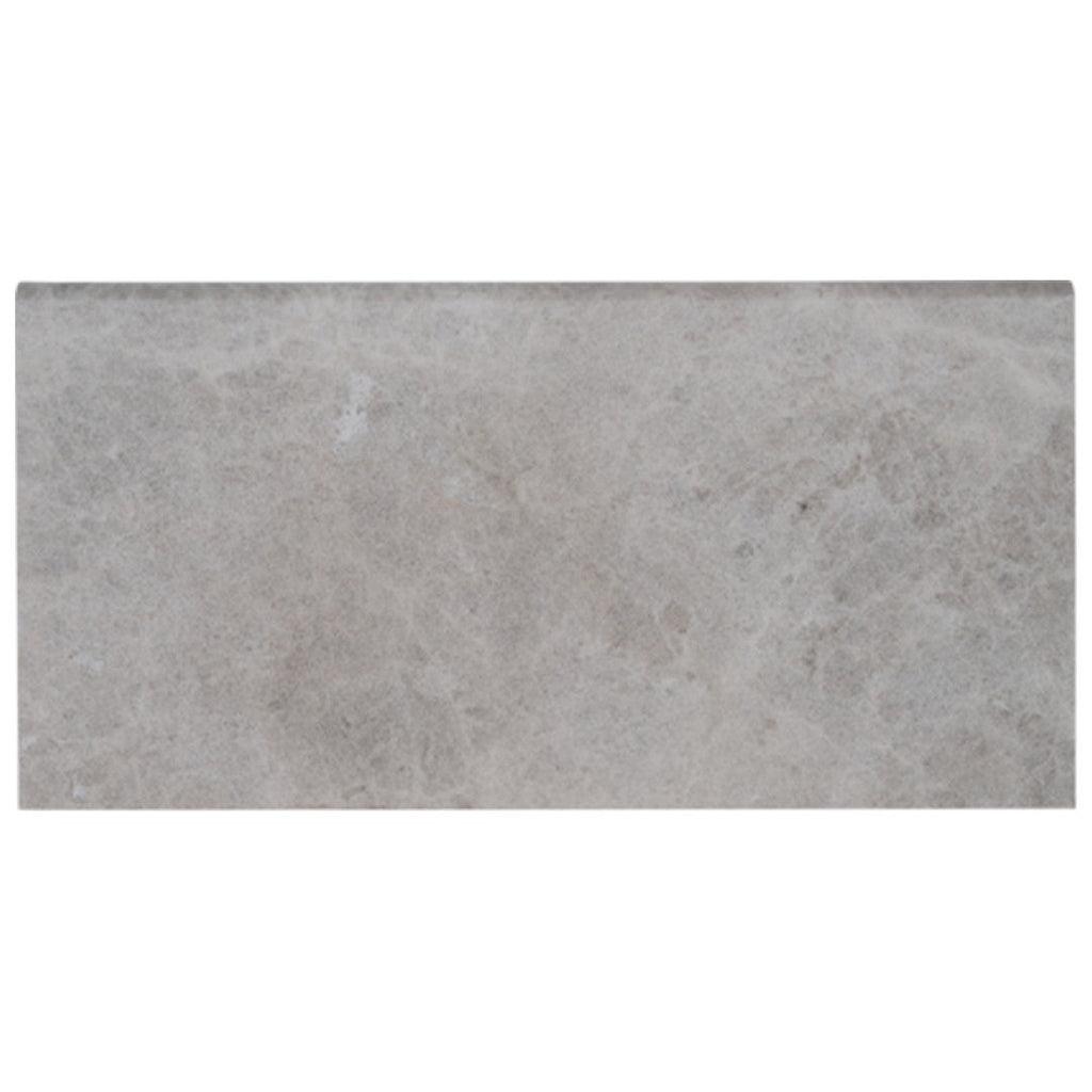 Keystone Aqua Gray 12" x 24" Sandblasted Marble Bullnose Coping is expertly designed for pool edges and stairs, offering a smooth curved finish with the added safety of a slip-resistant sandblasted texture.