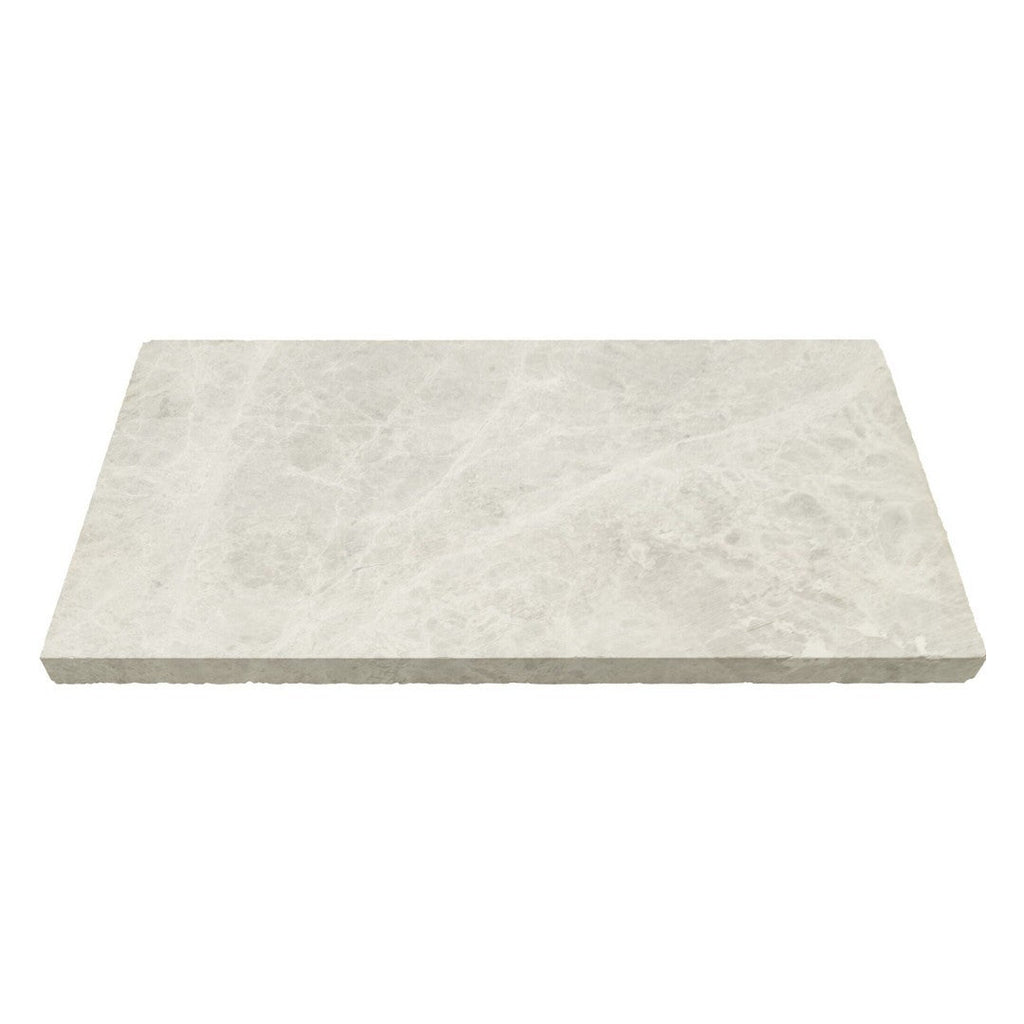 Keystone Aqua Gray 12" x 24" Sandblasted Marble Paver combines elegant gray tones with a sandblasted surface for improved traction, making it ideal for outdoor patios, walkways, and pool decks.