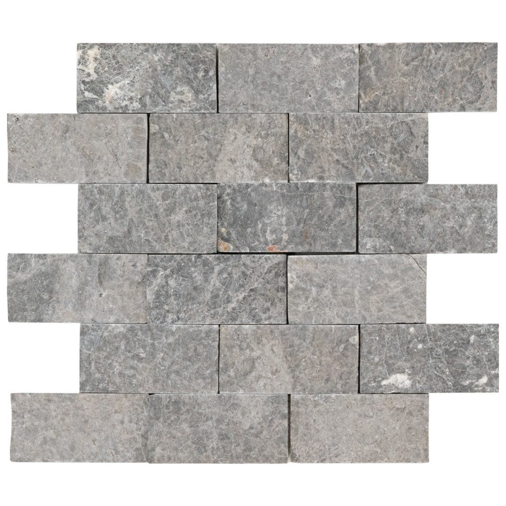 Keystone Cleopatra Gray 12" x 12" Split Face Natural Stone Mosaic features textured split face natural stone tiles that provide depth and a rustic appeal, ideal for accent walls and decorative applications both indoors and out.