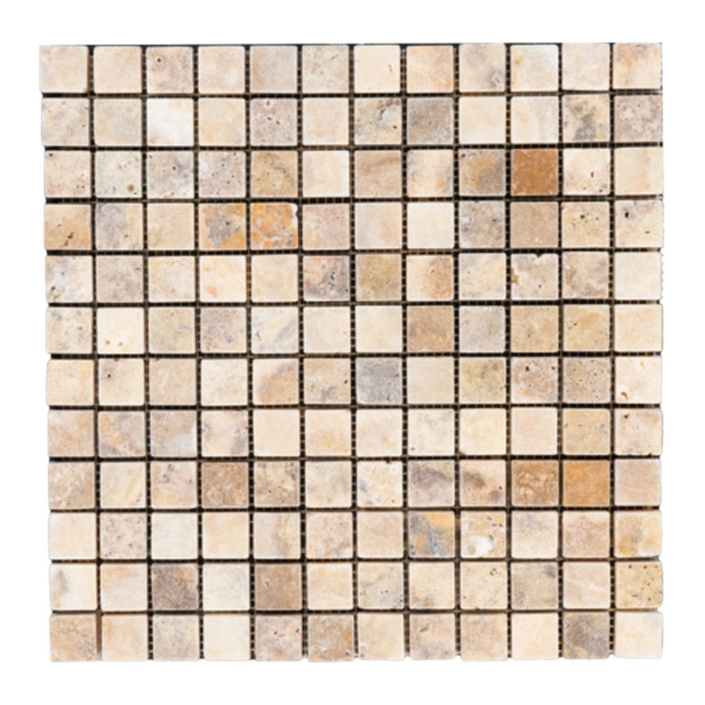Keystone Escabesa 12" x 12" Tumbled Travertine Mosaic combines the timeless beauty of travertine with a tumbled finish that enhances the stone's natural textures. This mosaic tile creates a warm, rustic feel that is ideal for both modern and traditional interiors. The tumbled finish softens the natural edges of each tile, giving it a weathered, aged look that is perfect for creating vintage-inspired or Mediterranean-style spaces. Keystone Escabesa 12" x 12" Tumbled Travertine Mosaic is perfect for floors, backsplashes, and feature walls, bringing warmth and elegance to any room.