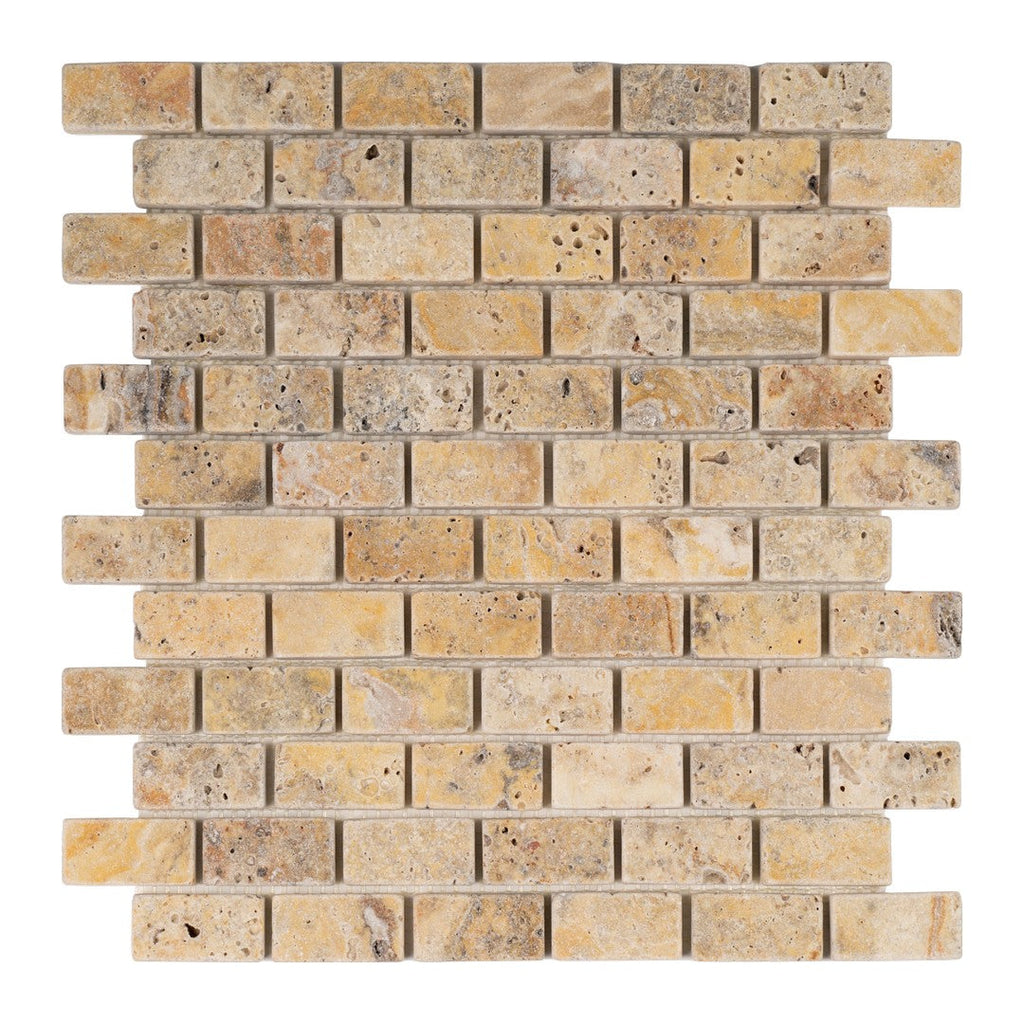 With a softer, weathered finish, the Keystone Escabesa 12" x 12" Tumbled Travertine 1x2" Mosaic creates a warm, Mediterranean-inspired aesthetic. This tumbled mosaic is ideal for antique-look flooring, backsplashes, and cozy living spaces.