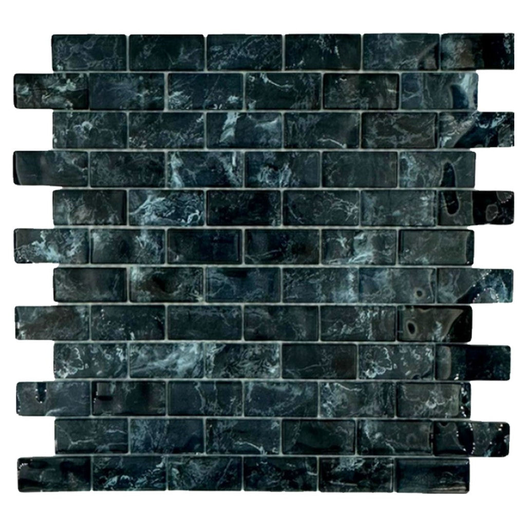 Keystone Midnight 12" x 12" Glass Mosaic features deep, dramatic tones that reflect light subtly for a moody, luxurious atmosphere. It’s ideal for elegant backsplashes, feature walls, and bathroom accents that call for depth and dimension.