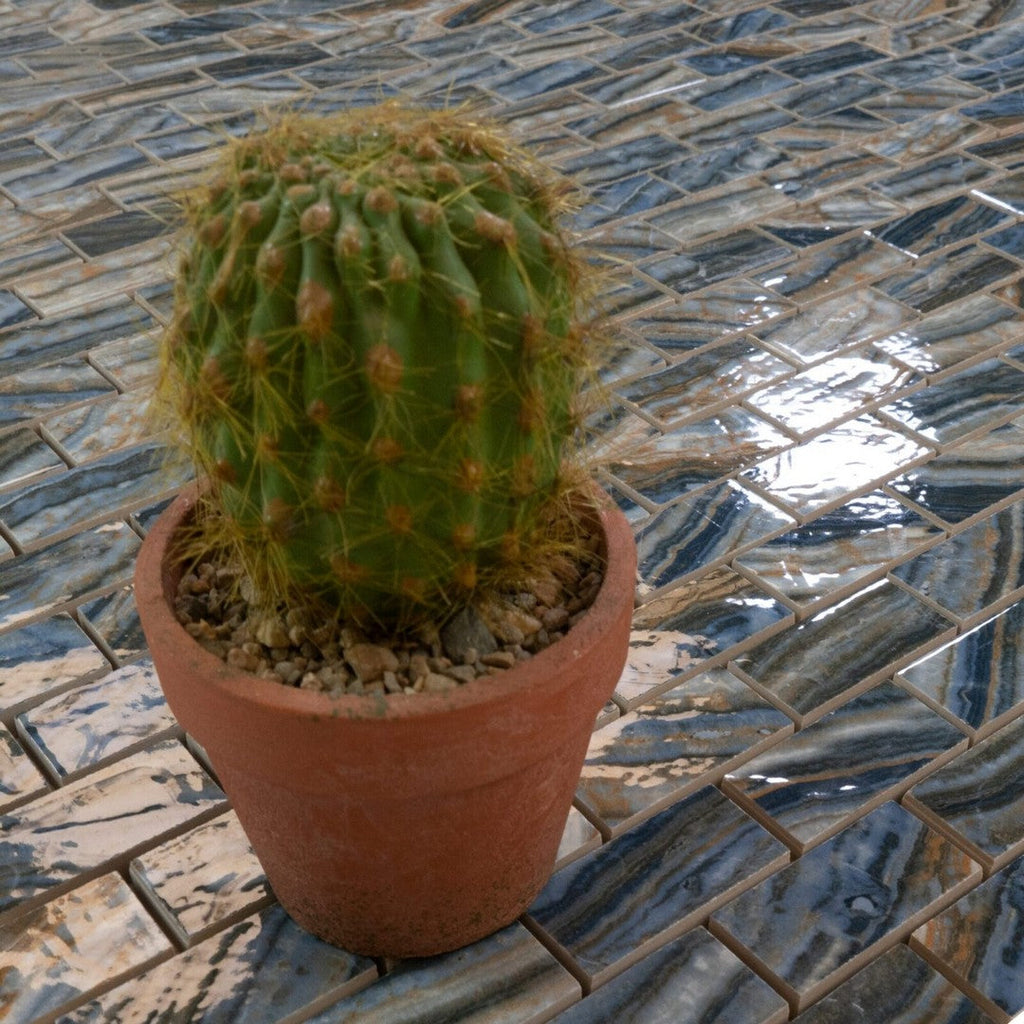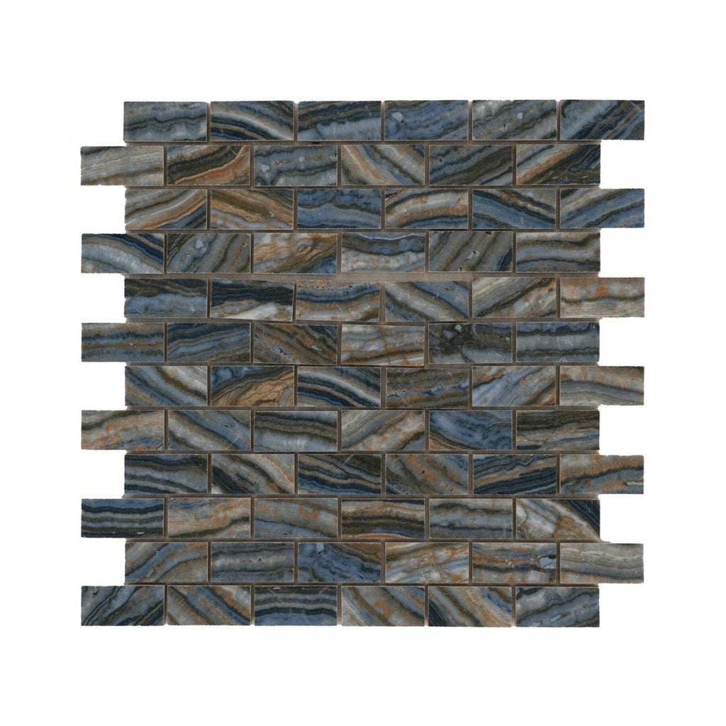 Keystone Onyx Blue 12" x 12" Polished Porcelain Mosaic brings bold elegance to your interiors. With a glossy finish and deep blue tone, it is perfect for feature walls, vanity backsplashes, or decorative borders.