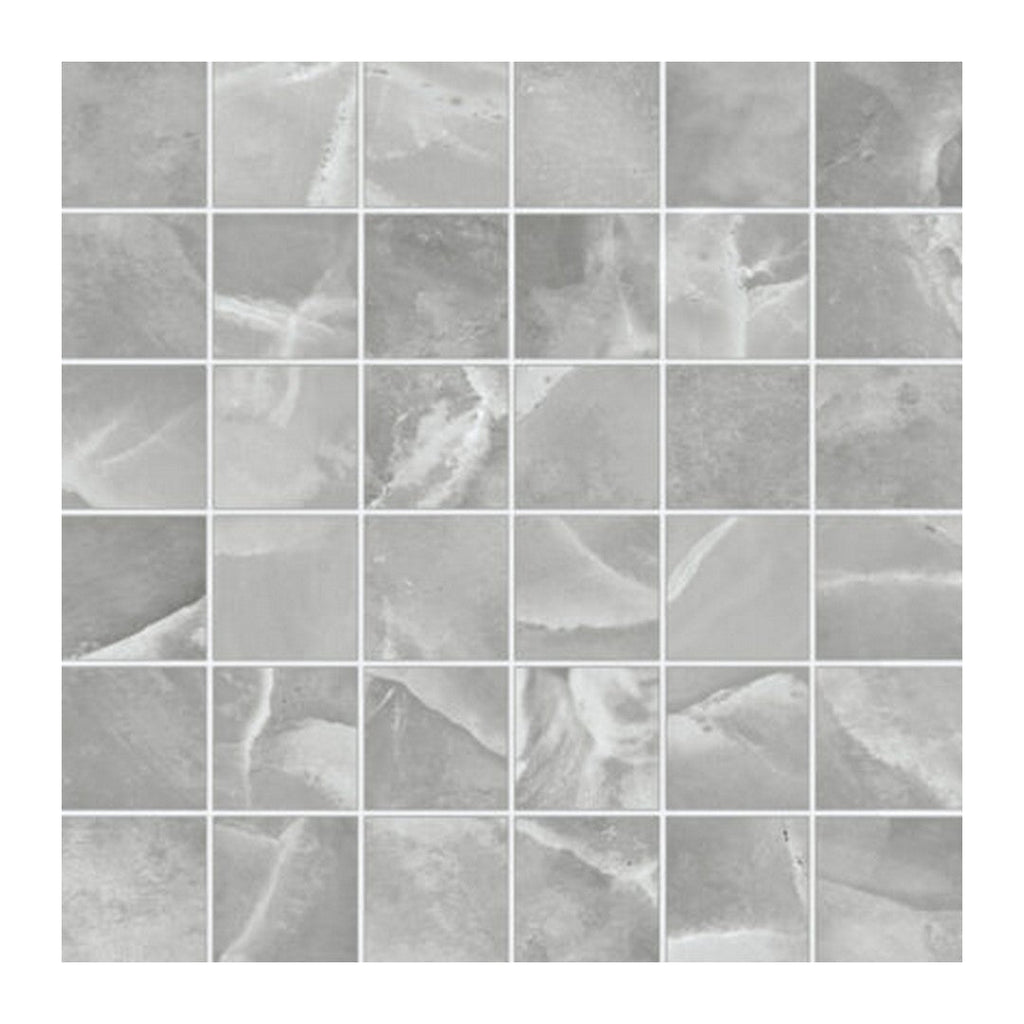 Keystone Onyx Grey 12" x 12" Polished Porcelain Mosaic is a contemporary take on classic tiling. The polished surface and rich grey tone bring subtle drama and depth to kitchens, baths, and decorative installations.