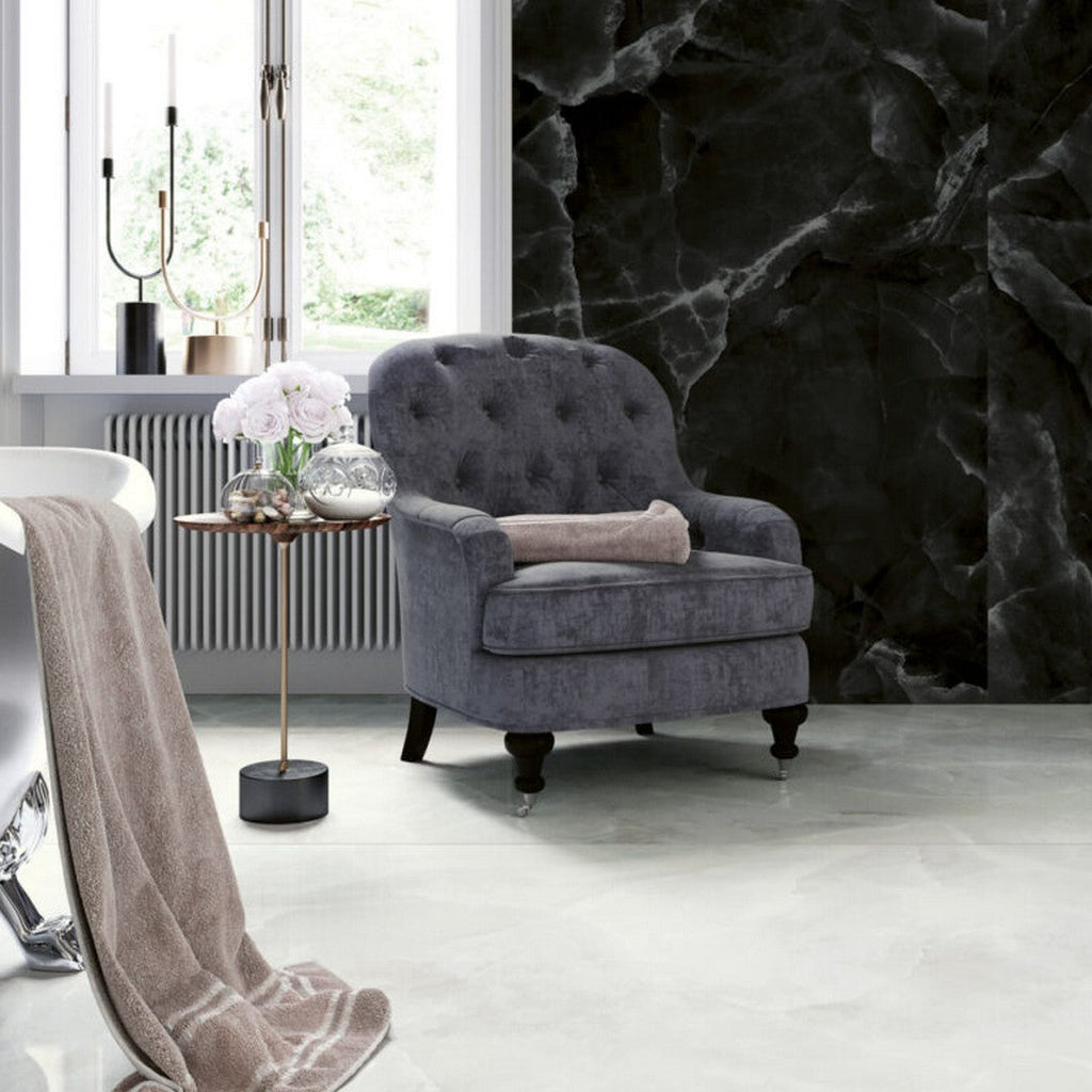 Keystone Onyx White 24" x 48" Polished Porcelain Floor Tile delivers a grand, seamless appearance with its extra-large format. Perfect for luxury settings, this tile minimizes grout lines and reflects light beautifully, making it an excellent choice for expansive living areas, hotel lobbies, and upscale commercial spaces.