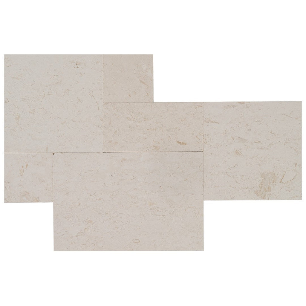 Keystone Shell Beach Brushed Limestone Versailles Pattern Tile offers a soft brushed finish with a classic French pattern layout. This elegant natural stone flooring solution adds luxury and timeless appeal to foyers, hallways, and expansive indoor areas.